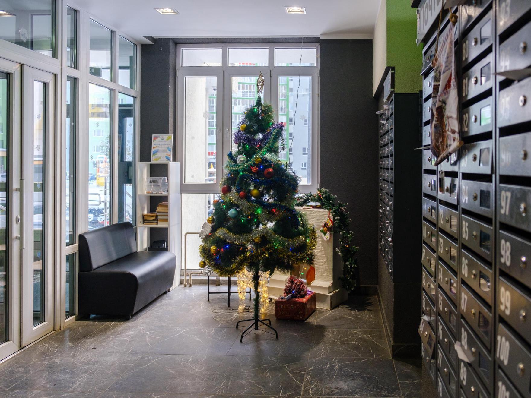 In the entranceway, meanwhile, a New Year«s mood prevails, with a Christmas tree standing, and overall everything looks very nice. It»s just cold — even here the radiator is barely warm.