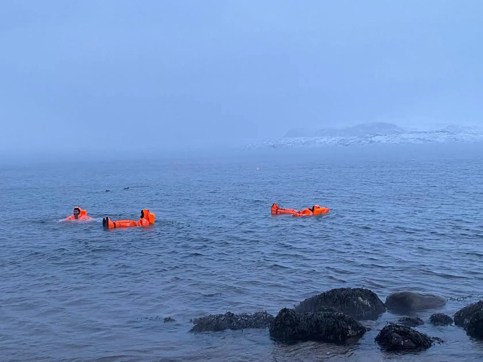 extreme ice-floating (swimming in a wetsuit among ice floes);