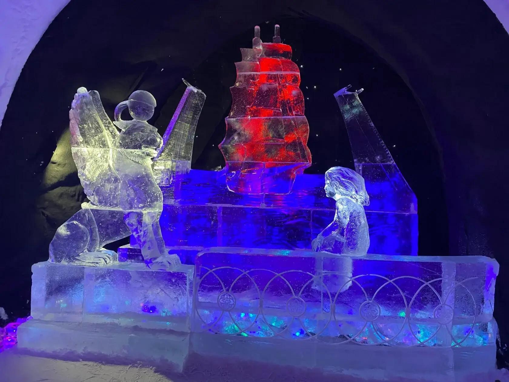 Snow Village—this is a whole icy world with musical accompaniment, pleasant to walk through. The paradox is that it«s even warmer inside than outside: outside -30 °C (-22 °F), inside only -5 °C (23 °F). For the Polar region, this is the highest comfort!