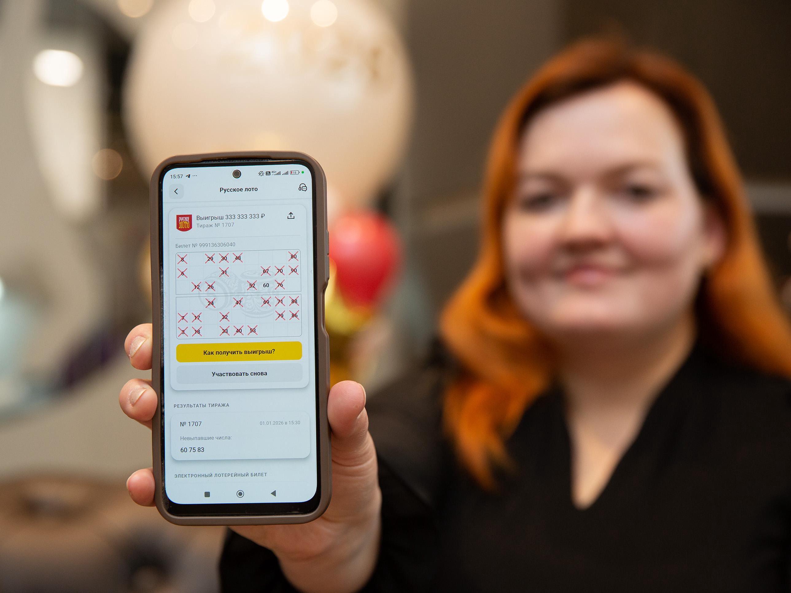 Natalia Lokhmatova, an educational psychologist from Sverdlovsk Region, won 333,333,333 rubles (approximately $3.3 million at current rates) in a lottery. On the 31st draw, in one of the fields on her ticket, all 15 numbers matched the drawn barrels, and Natalia was among the winners who split the main prize of the New Year draw.