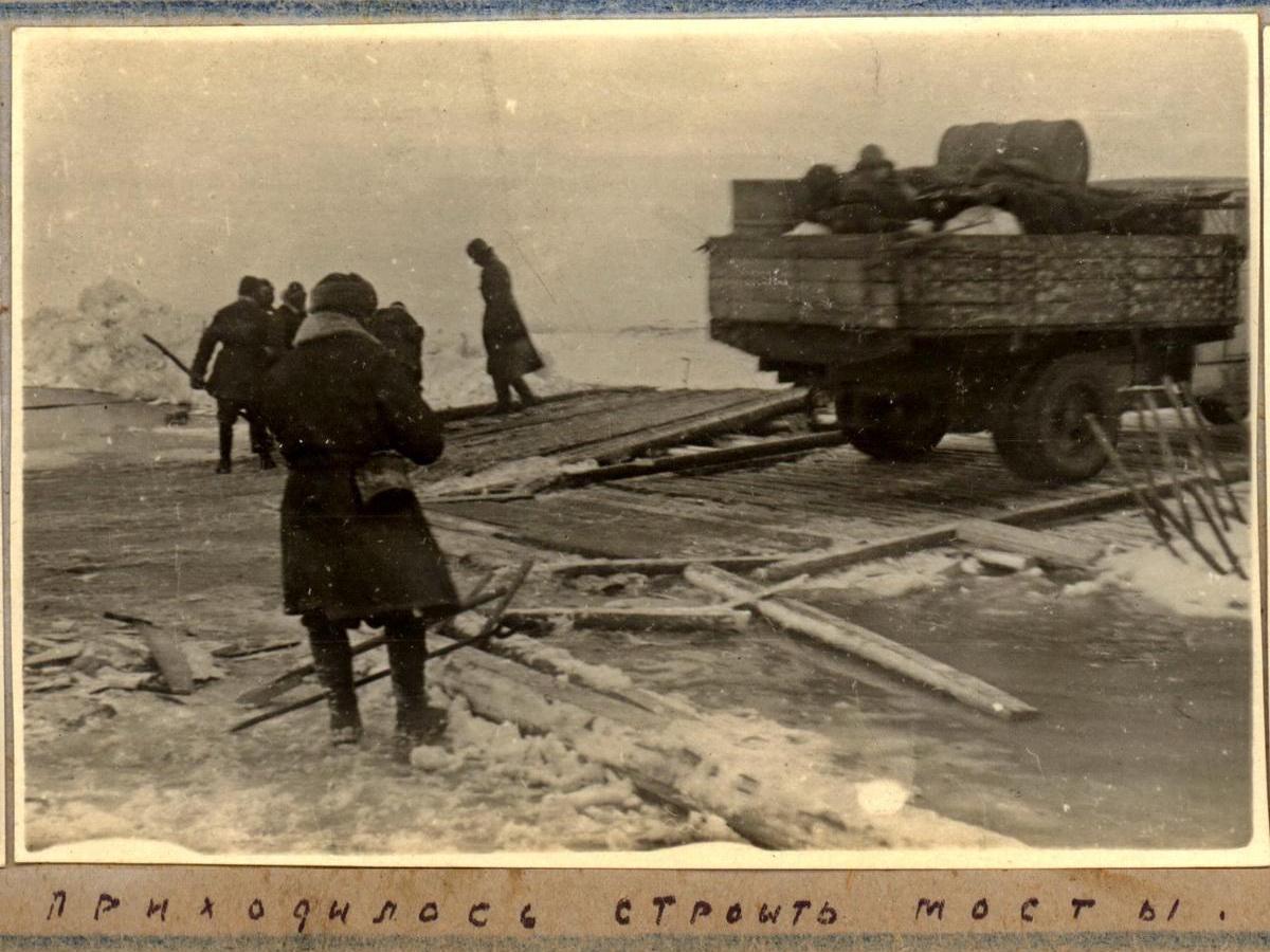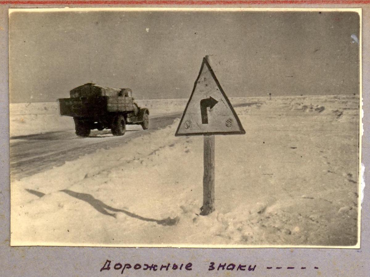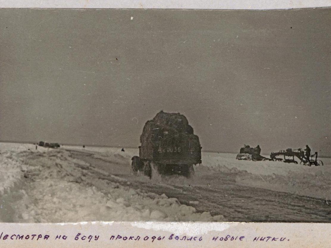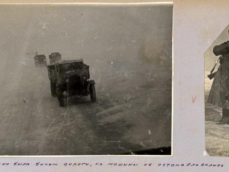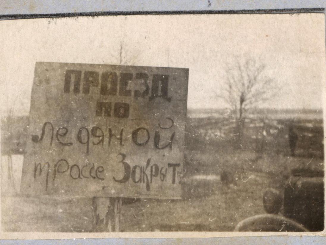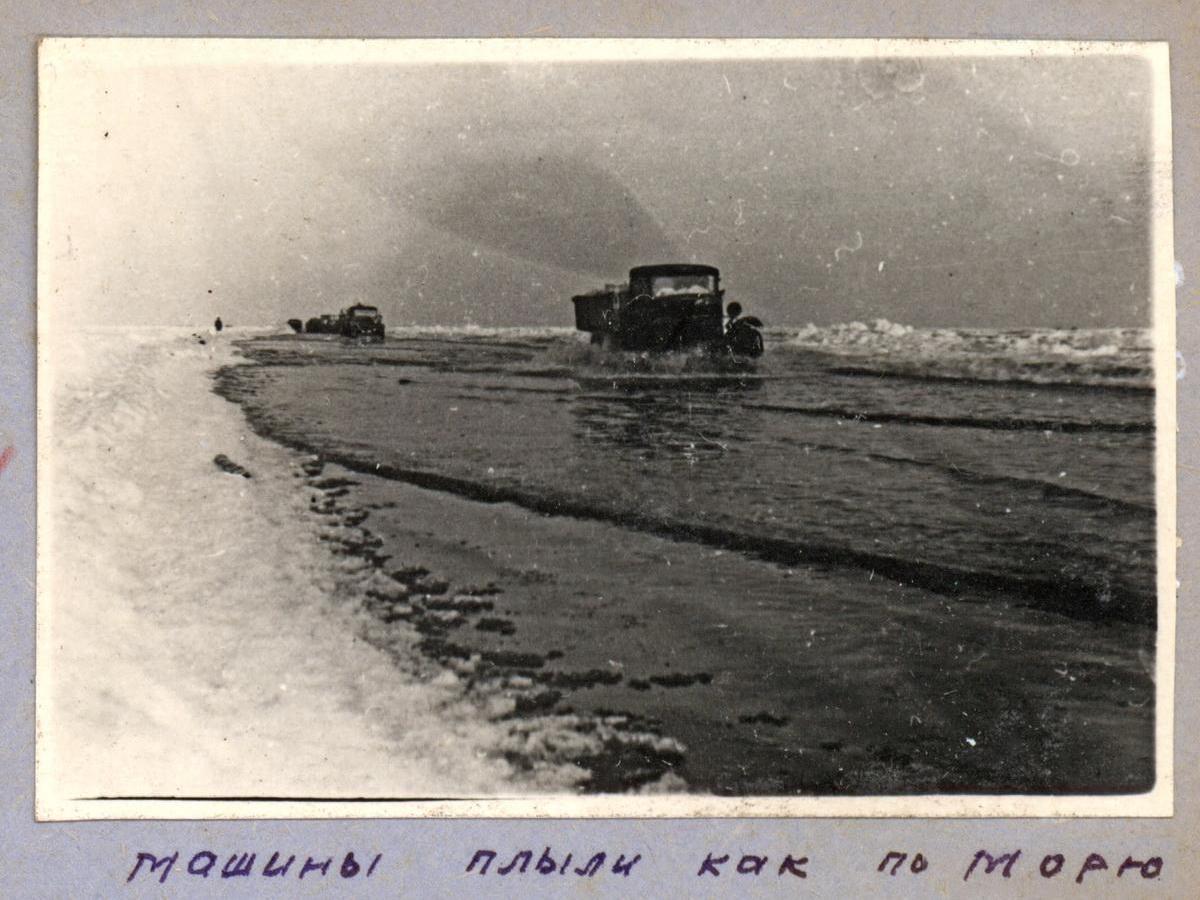 In addition to photographs, excerpts from the diary of the ice section of the Leningrad Front Military Automotive Road, serviced by the 64th Road Maintenance Regiment, are presented. Below are verbatim entries: