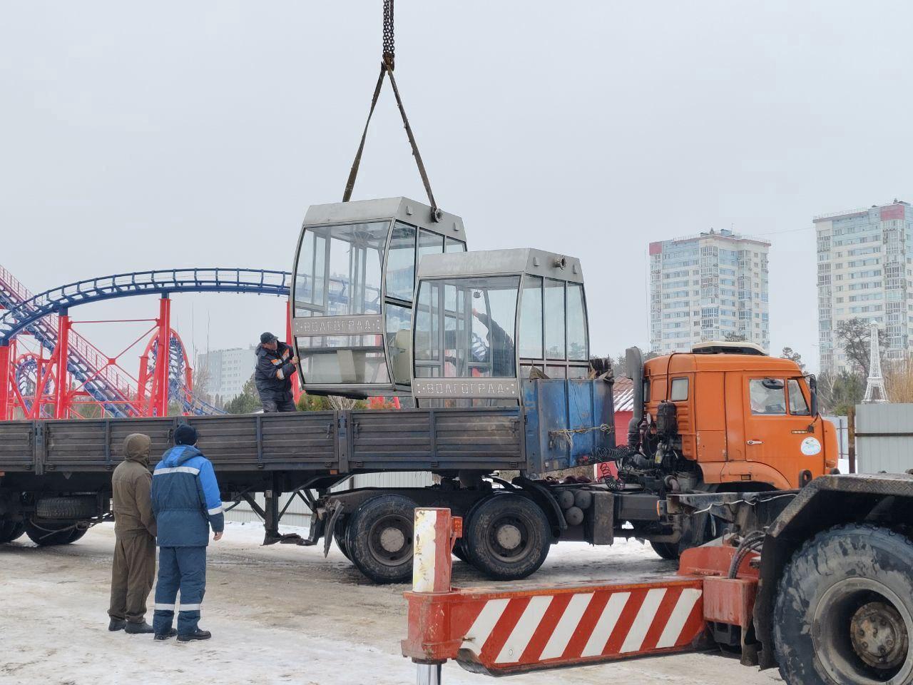 The passenger cabins of the Ferris wheel have been transported to the Krasnoarmeysky district of Volgograd.