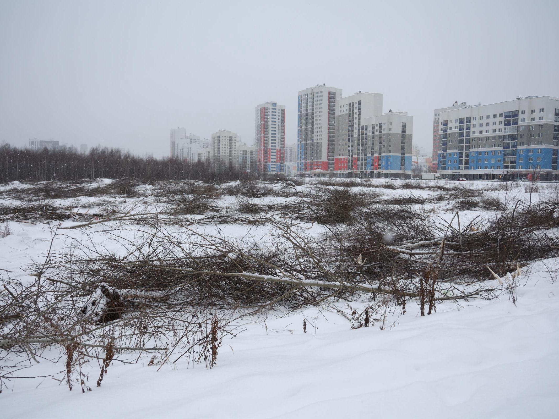 In Akademichesky, construction machinery has started clearing a huge forest plot between houses on Pavel Shamanov, Wilhelm de Gennin, Akademik Sakharov, and Ryabinin streets.