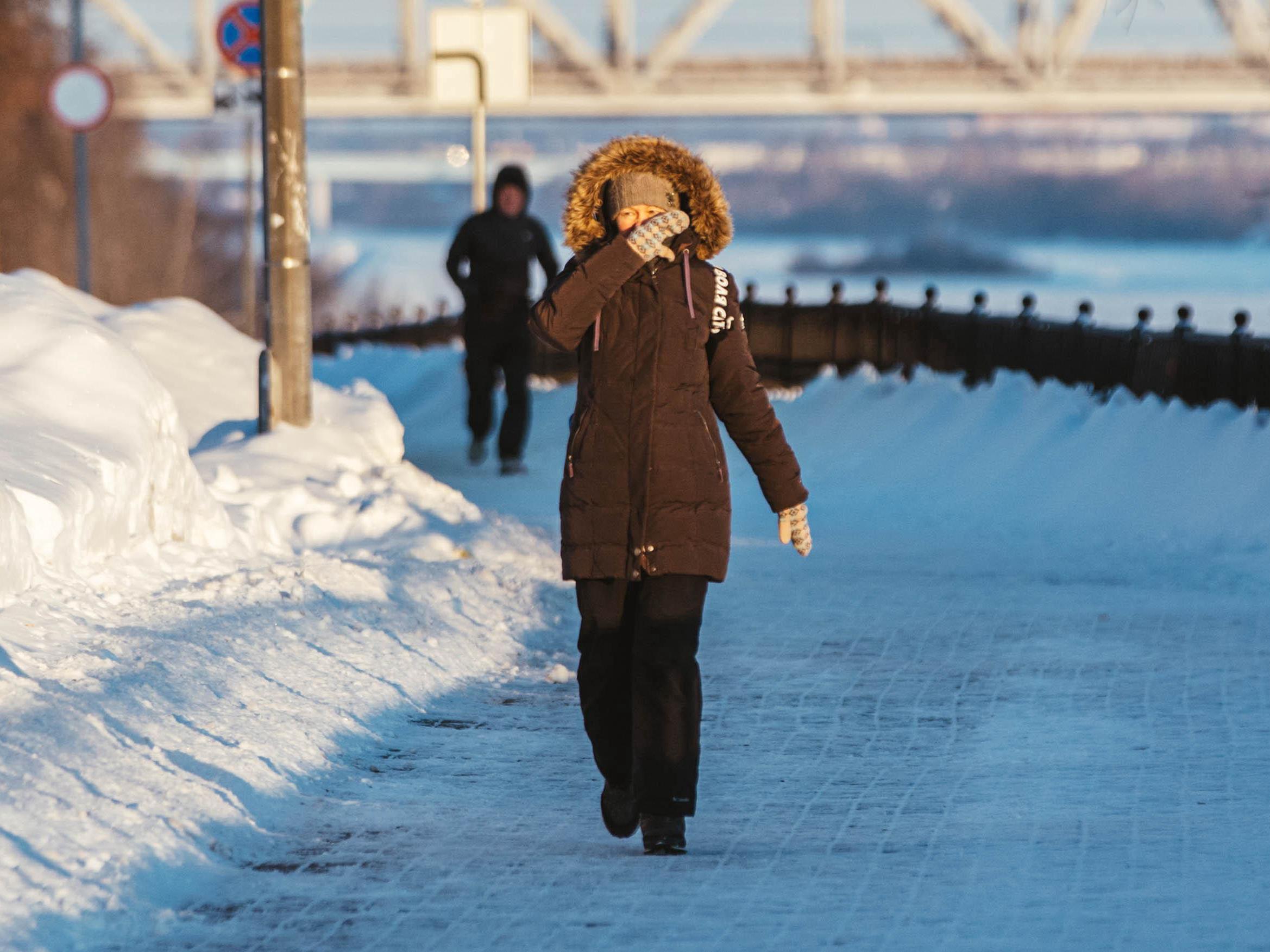 The frost nips at the face, so it«s better to wrap up tightly in a scarf.