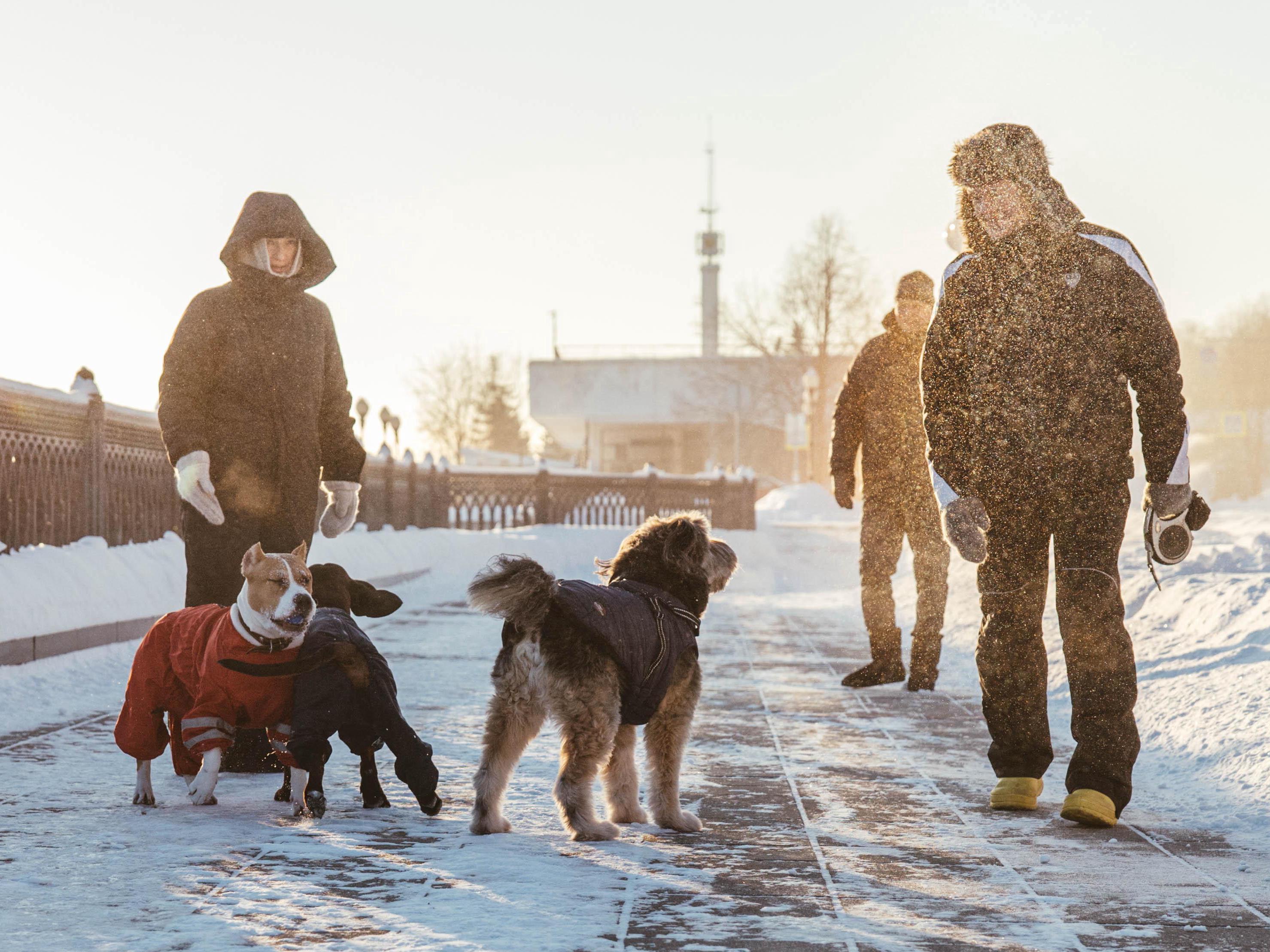 Dog owners have bundled up, as pets need to be walked.
