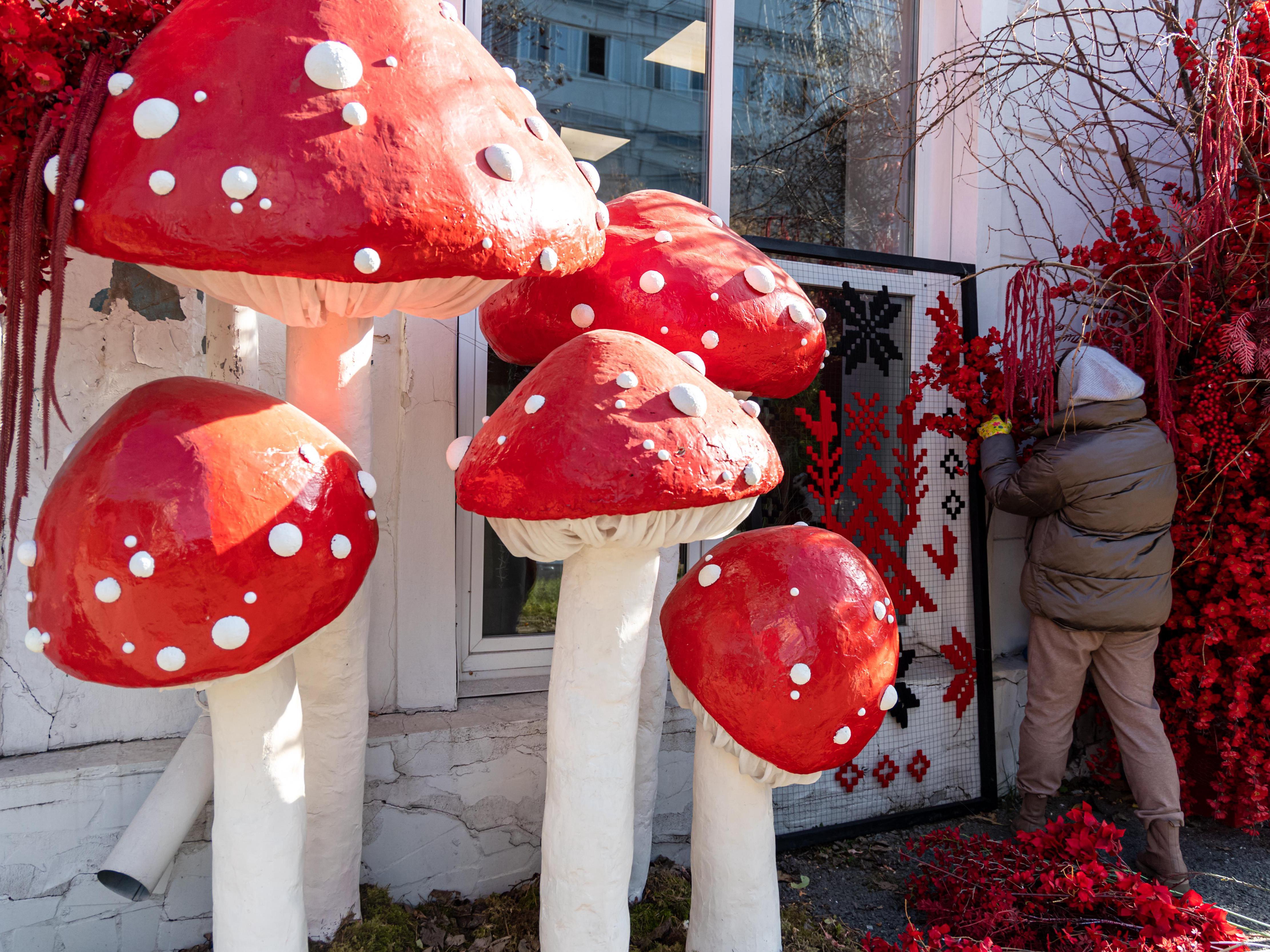 But mostly, Krasnoyarsk residents like it, Ksenia says that many approach the salon and photograph both the mushrooms themselves and take pictures with them. A bit later, they plan to illuminate the fly agaric mushrooms because, according to Ksenia, «for now they are not visible at all».