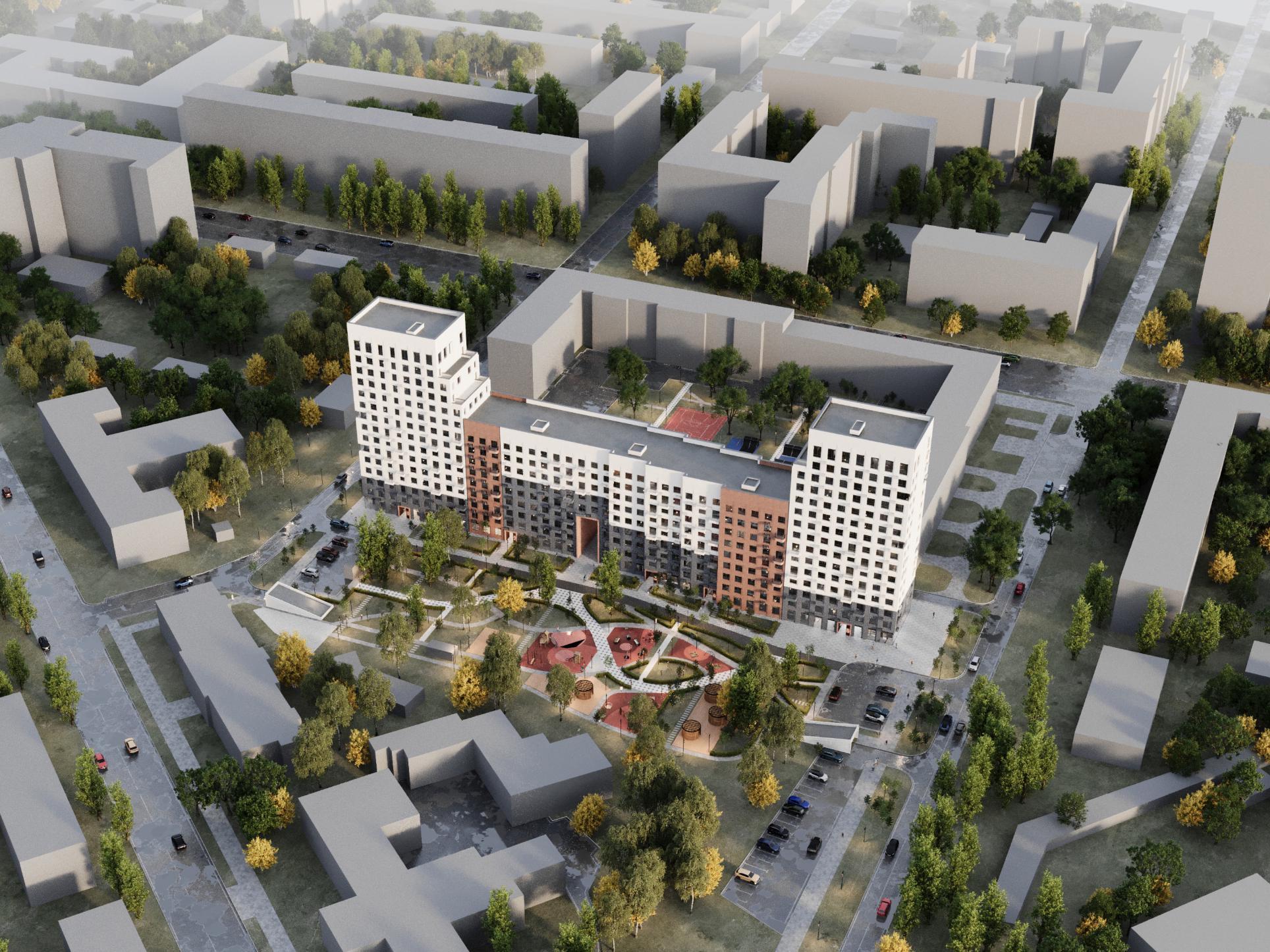 Future residents will enjoy a building of variable height (from 9 to 15 stories) with geometrically strict, yet elegant architecture. The windows of their apartments will not face roadways, and home tranquility will never be disturbed by construction next door: no new buildings will appear here. At the same time, within walking distance, there are immediately 2 metro stations and 9 transport stops.