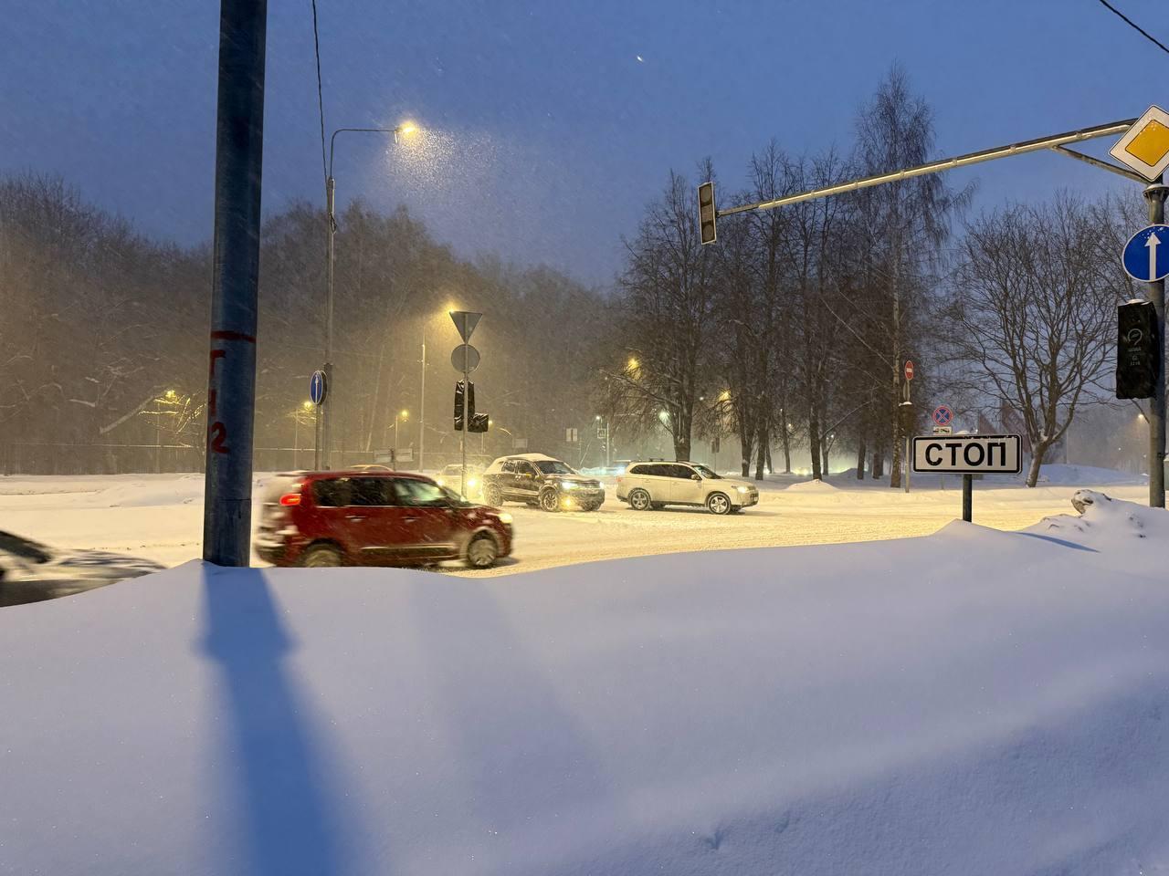 MSK1.RU shows the first consequences of the snowfall that has hit.