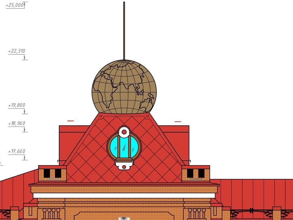 The main question arose regarding the roof, or more precisely, the tent roof of the historical building. Here, as a result of the reconstruction, a huge figure in the form of a globe with a spire emerging from it will appear. Currently, there is nothing like this on the building«s roof.