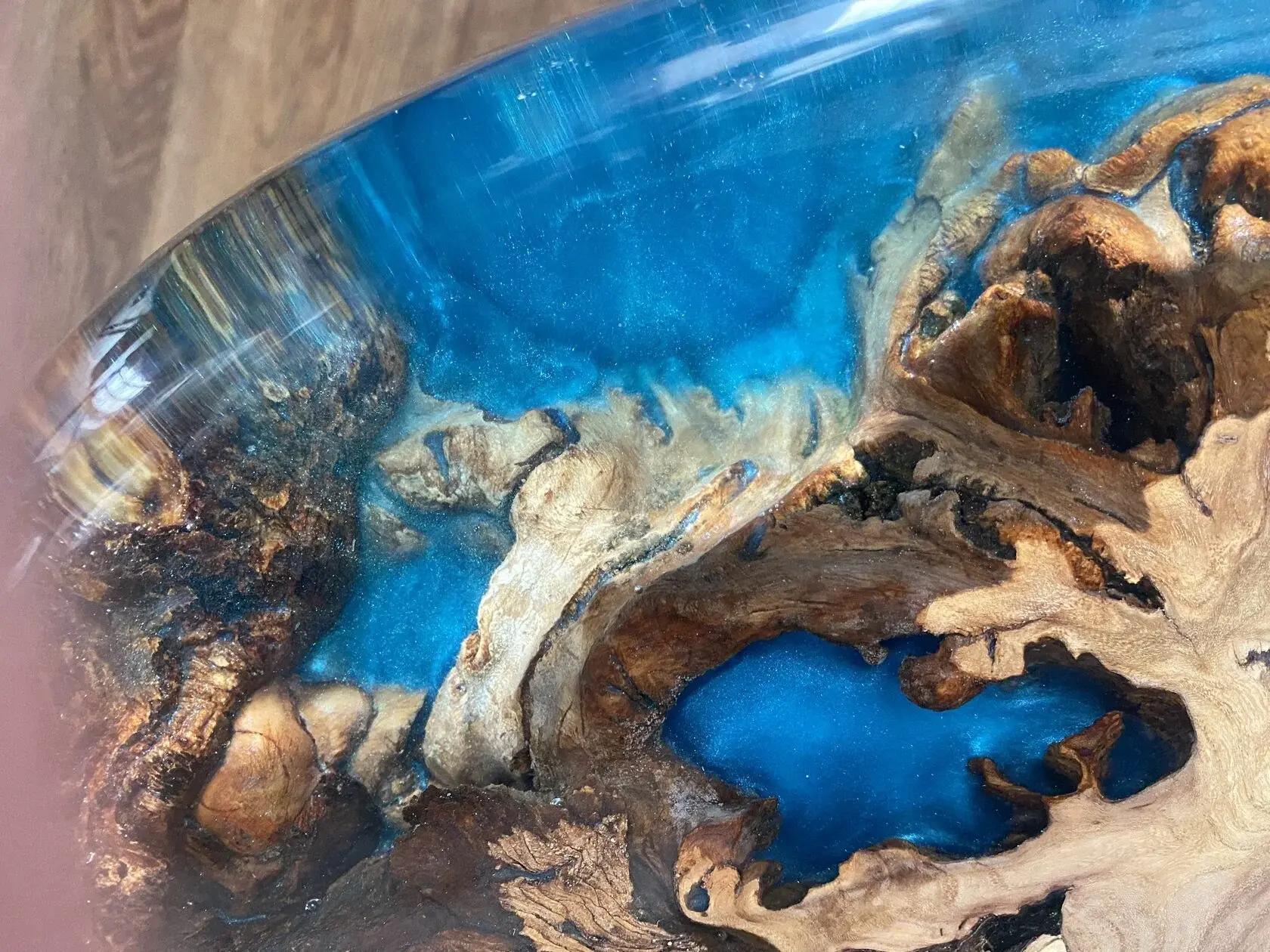 «The slab arrives untreated, all crooked, and the first thing I do is calibrate it. Then I remove the marks from the router by filling them with resin and calibrate it again. At this stage, micro-cracks open up, I fill them with resin, and only after that comes sanding, fine sanding, shaping, final processing, and applying the finish. By pouring layer by layer, I create depth and the desired shade. These subtleties, these touches, affect the final result. Beauty is in the details,» explains the craftsman.