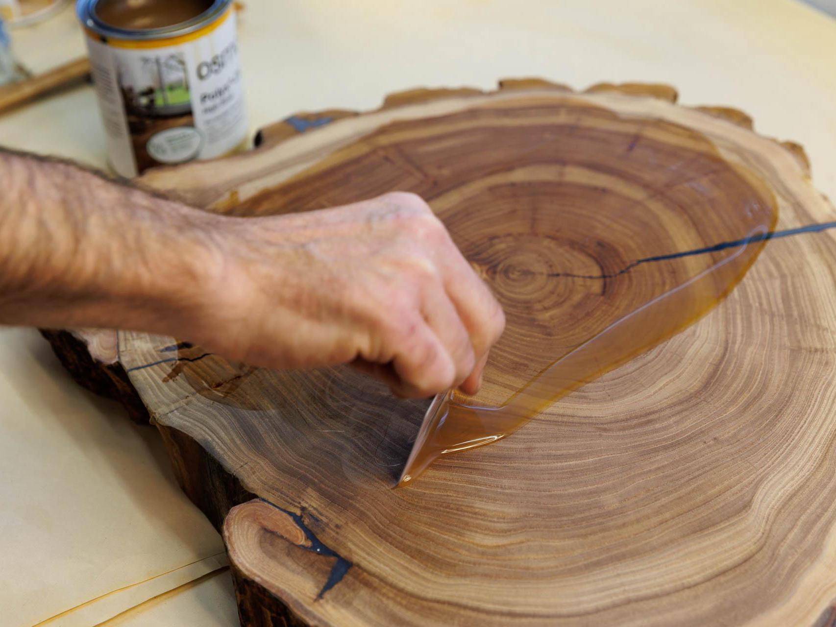 «I like not just coating the wood with oils but «playing» with them. For example, I wanted the pattern of [two similar tables] to be different — I add gold or silver pigments, depending on what shade is needed. A special touch appears, which the eye can«t see, but still something draws you in,» Alexander is convinced.