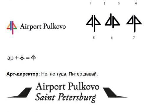 Critics point to the stereotypical idea—using drawbridges for St. Petersburg and airplane silhouettes for an airport—and to the unsuccessful, in their opinion, font, which they call outdated and clashing with the overall look.