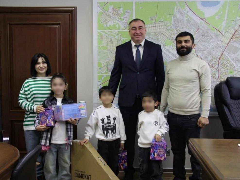 The district head noted that one of the children in the family is hearing-impaired. The older brother and sister already attend school, and the younger boy still goes to kindergarten but dreams of sitting at a school desk. Their father is a construction worker, and their mother is a homemaker. The parents have been Russian citizens for 20 years.