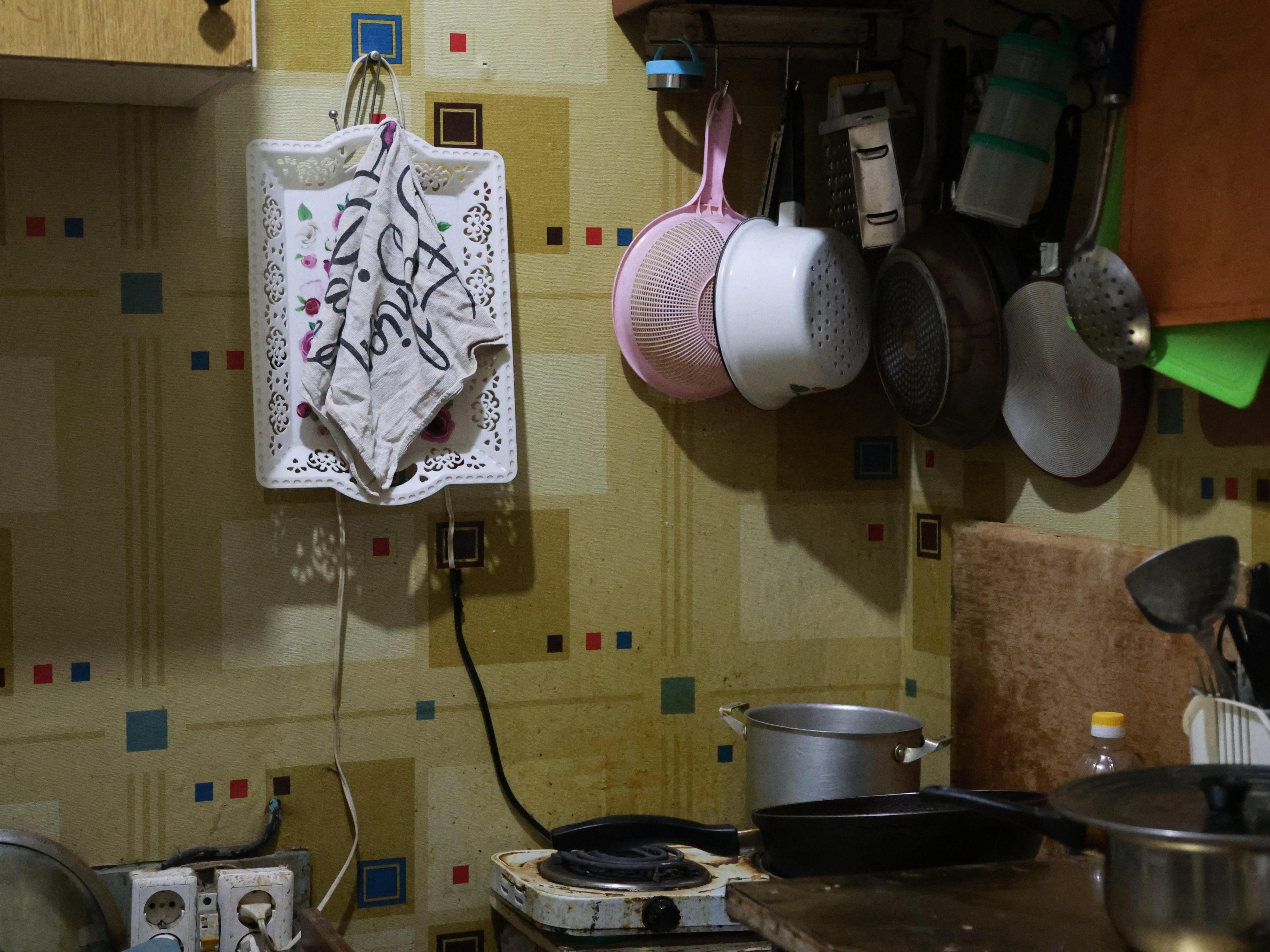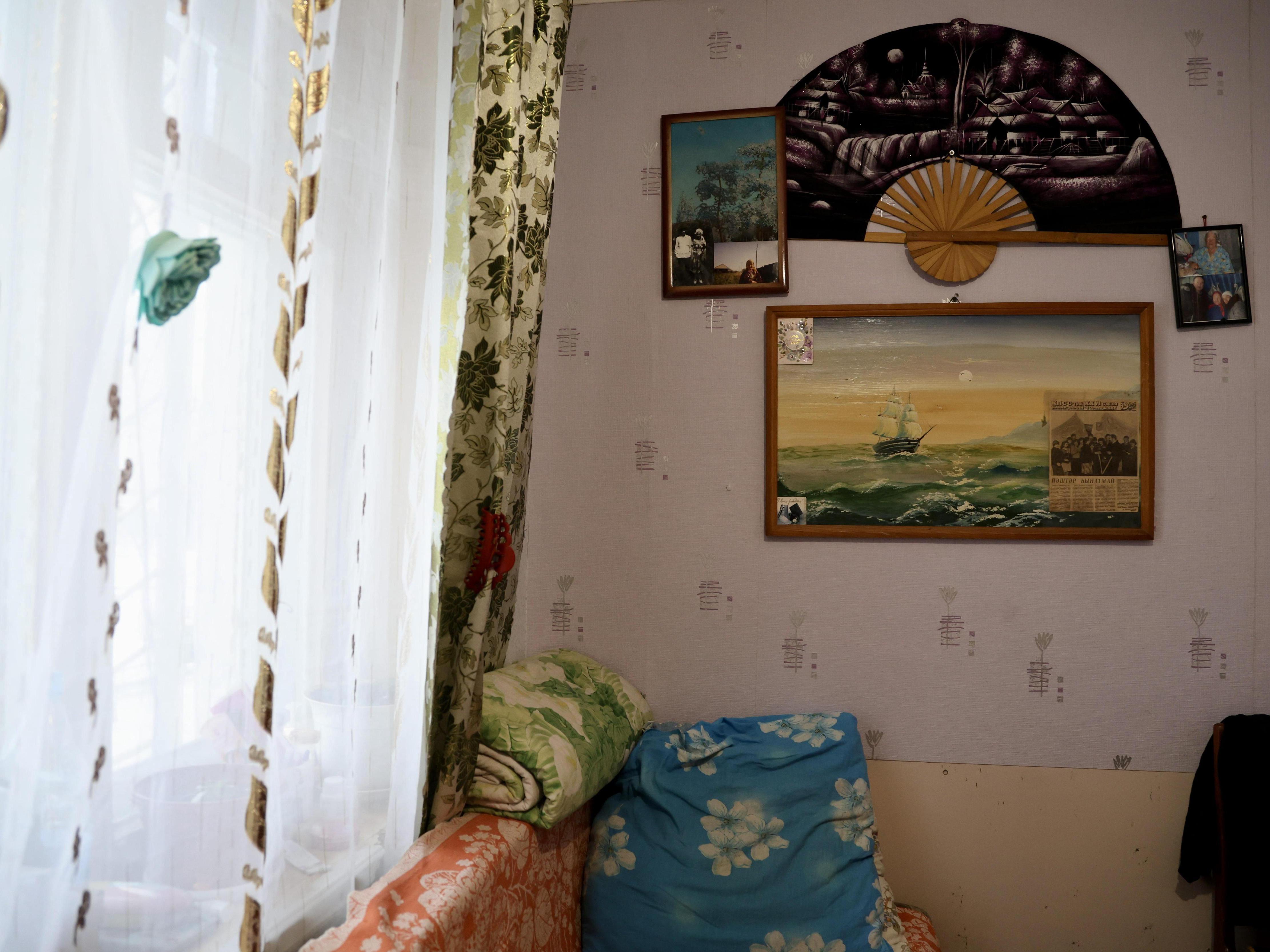The janitor«s lifestyle is modest, but in the small room, a sofa, table, television, and refrigerator fit. There»s even a bathroom. True, it«s combined with the kitchen. In places of honor hang photos of relatives and nature pictures that neighbors give to Faya when they no longer need them. The simple landscapes remind the janitor of the place where she was born.