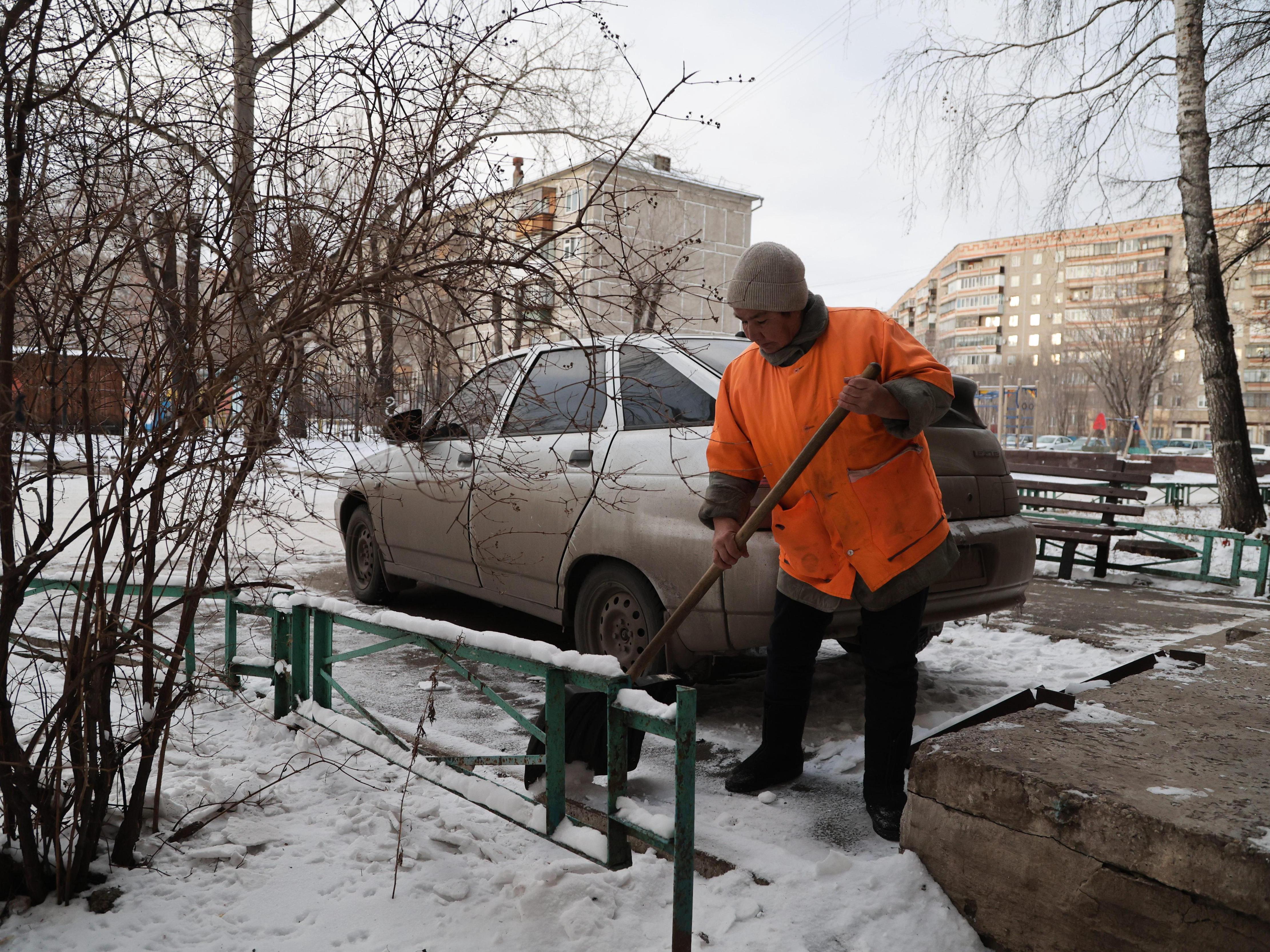 Janitor cleans Magnitogorsk yards for 20 years, lives in cramped quarters