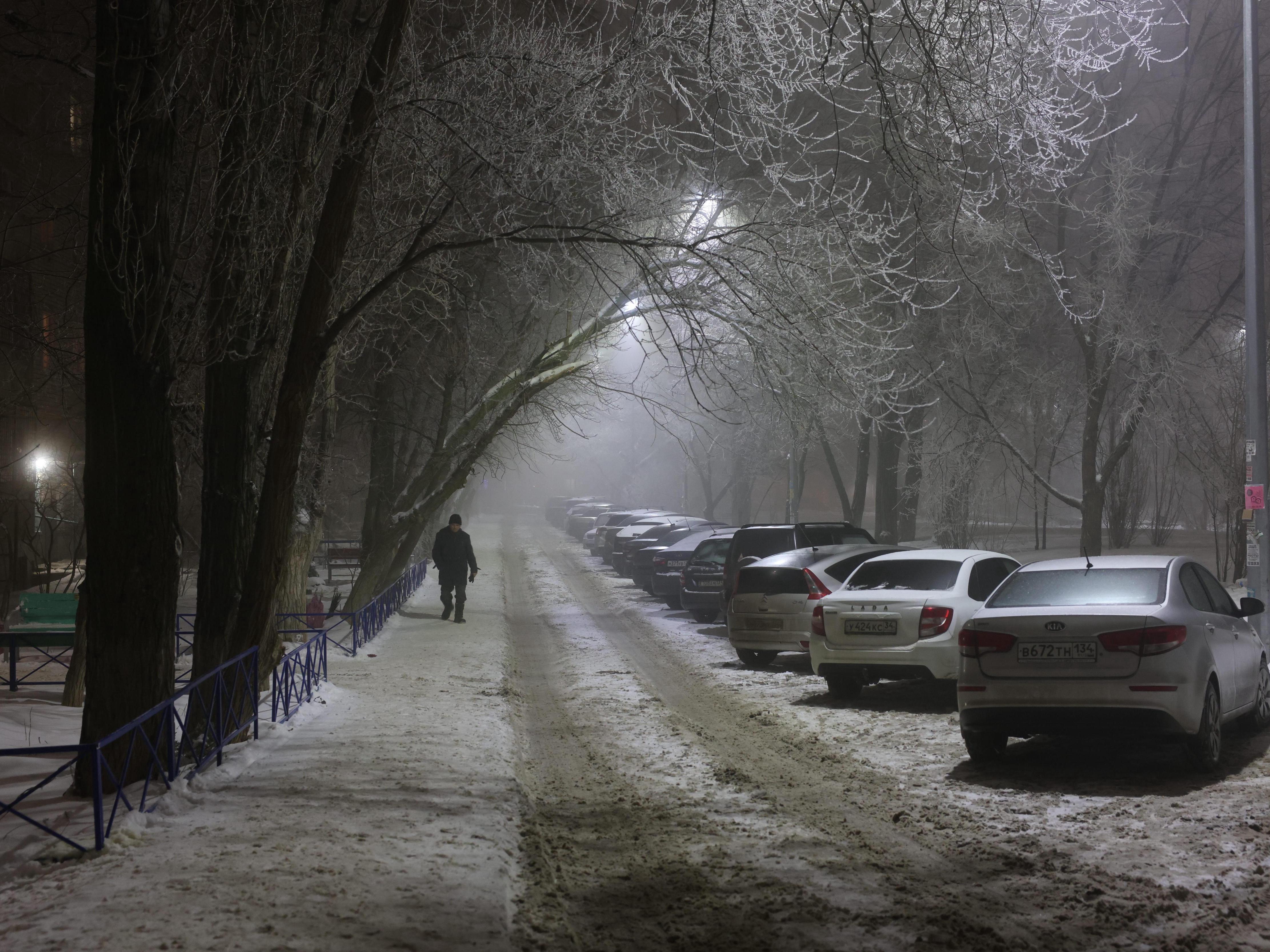 January fog envelops Volgograd, no hat needed