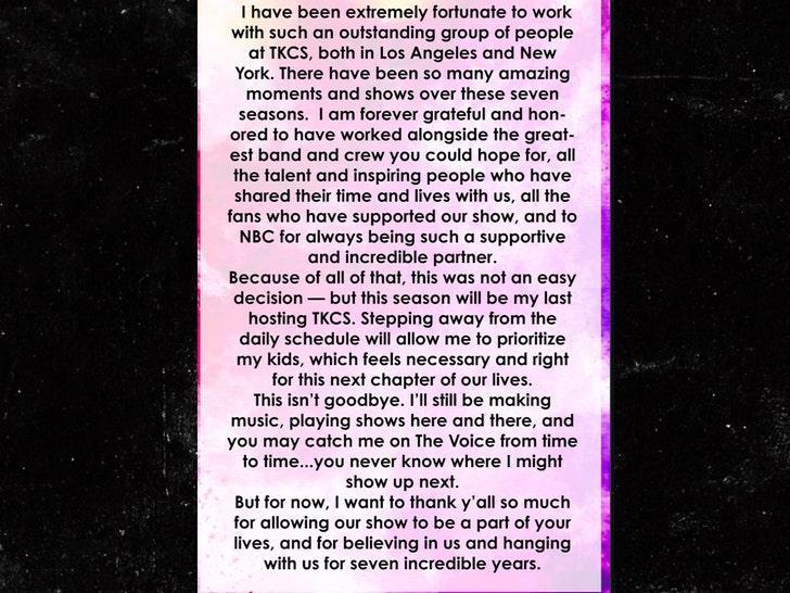 Clarkson expressed gratitude to the production teams in Los Angeles and New York, NBCUniversal, musicians, guests, and viewers who have supported her from day one. She called the past seven years «amazing» and said she feels «forever grateful and honored» to have hosted the show.
