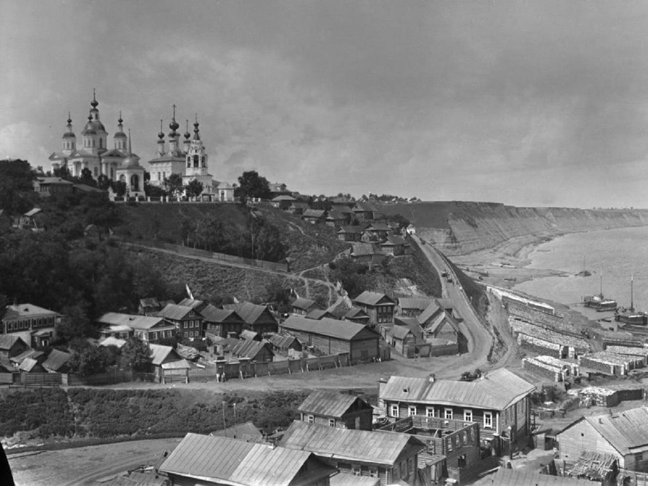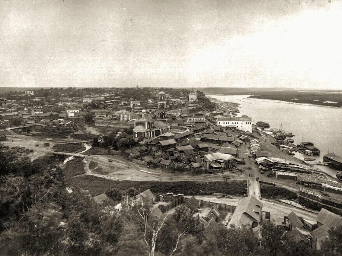 An archival view of Pavlovo from the 1890s to 1910s, showcasing the town«s layout along the Oka River.