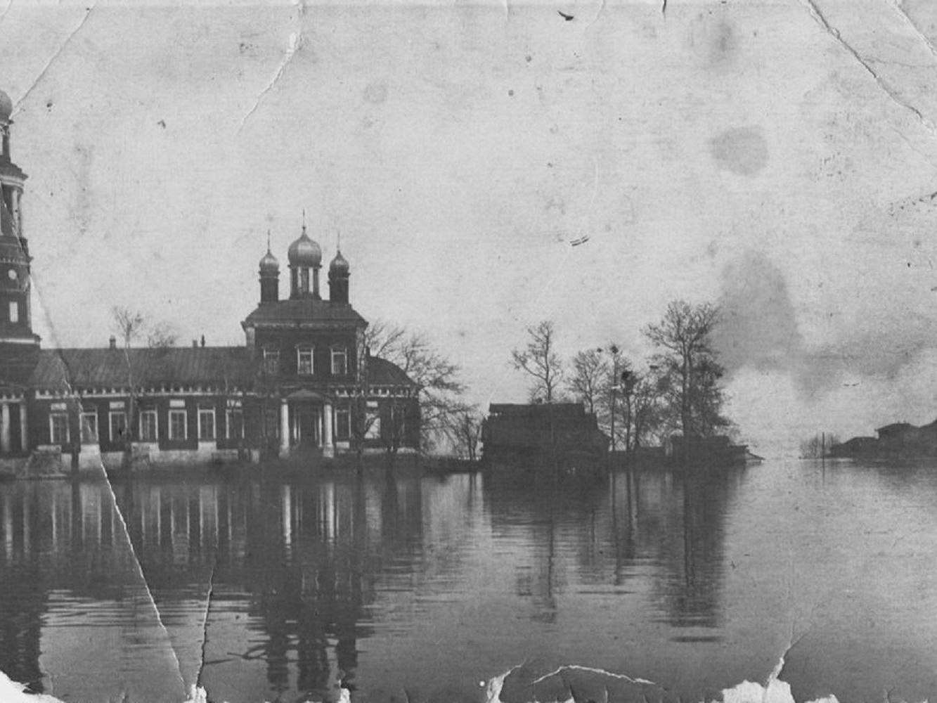 Pavlovo during a spring flood in the early 20th century, illustrating the town«s vulnerability to the Oka River.