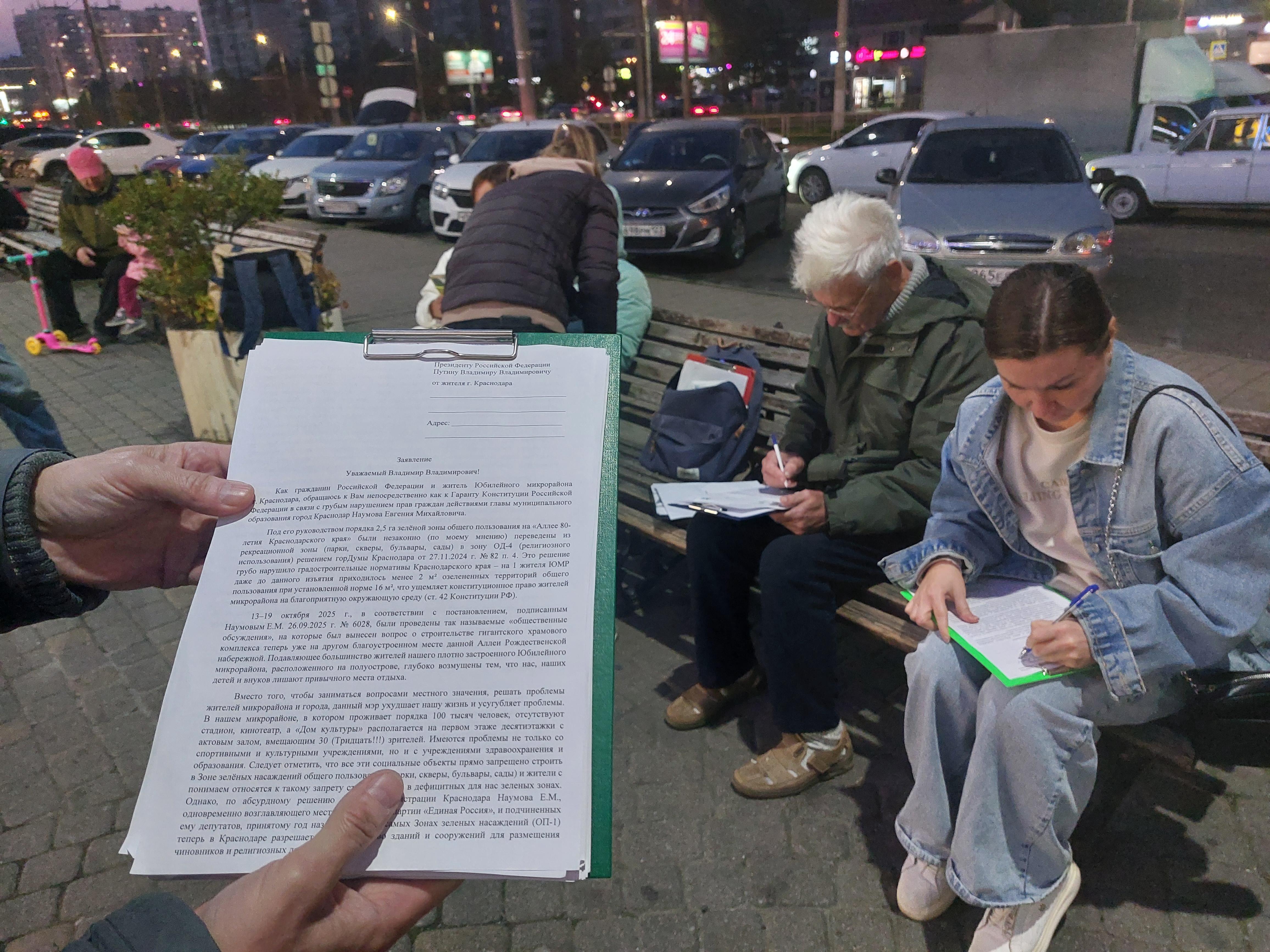 «We, the undersigned residents of the city of Krasnodar, declare a complete loss of trust in the head of the municipal formation of the city of Krasnodar, Yevgeny Mikhailovich Naumov. <…> We believe that Y. M. Naumov is failing in his duties as city head and has lost the moral and political right to lead the regional capital,» states the signature sheet.