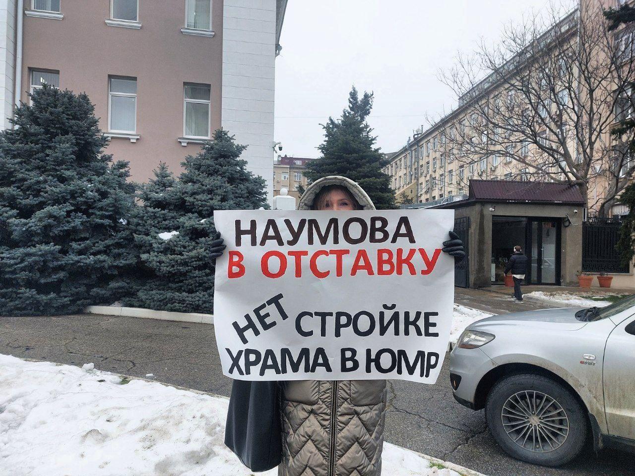Authorities in Krasnodar have decided to introduce changes to the procedure for electing and removing the mayor. Public discussions on the draft document were held on 26 January. Before the meeting began, a resident of the Yubileiny District, Yekaterina, held a solo picket with a sign: «Naumov resign.»