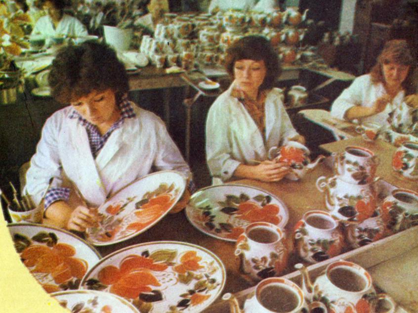 Workers at the «Chaika» Porcelain and Faience Factory. The factory is now closed, and there are plans to build a water park on its territory.