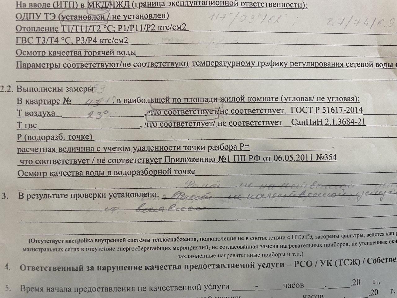 In the act, the SGC engineer, however, wrote that the temperature in the apartment — is 23°C (73°F), which complies with GOST.