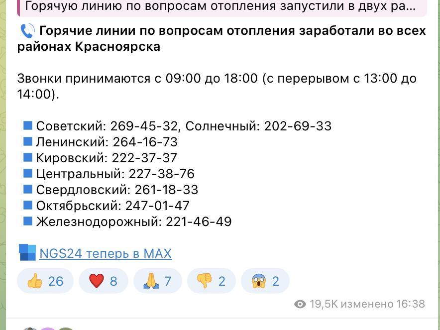 Hotlines on heating issues, as promised by the new mayor, were indeed opened in all districts of Krasnoyarsk, however residents began to complain en masse that it turned out to be impossible to get through.