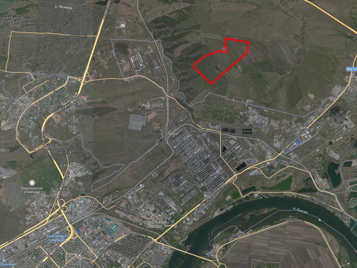 The plot in question is behind the aluminum plant on the border of the Sovetsky District — between Pogranichnikov and Krazovskaya streets and the Yenisei Highway. The exact cadastral number is 24:11:0290202:524. The land belongs to the Yemelyanovsky District and previously had agricultural status.