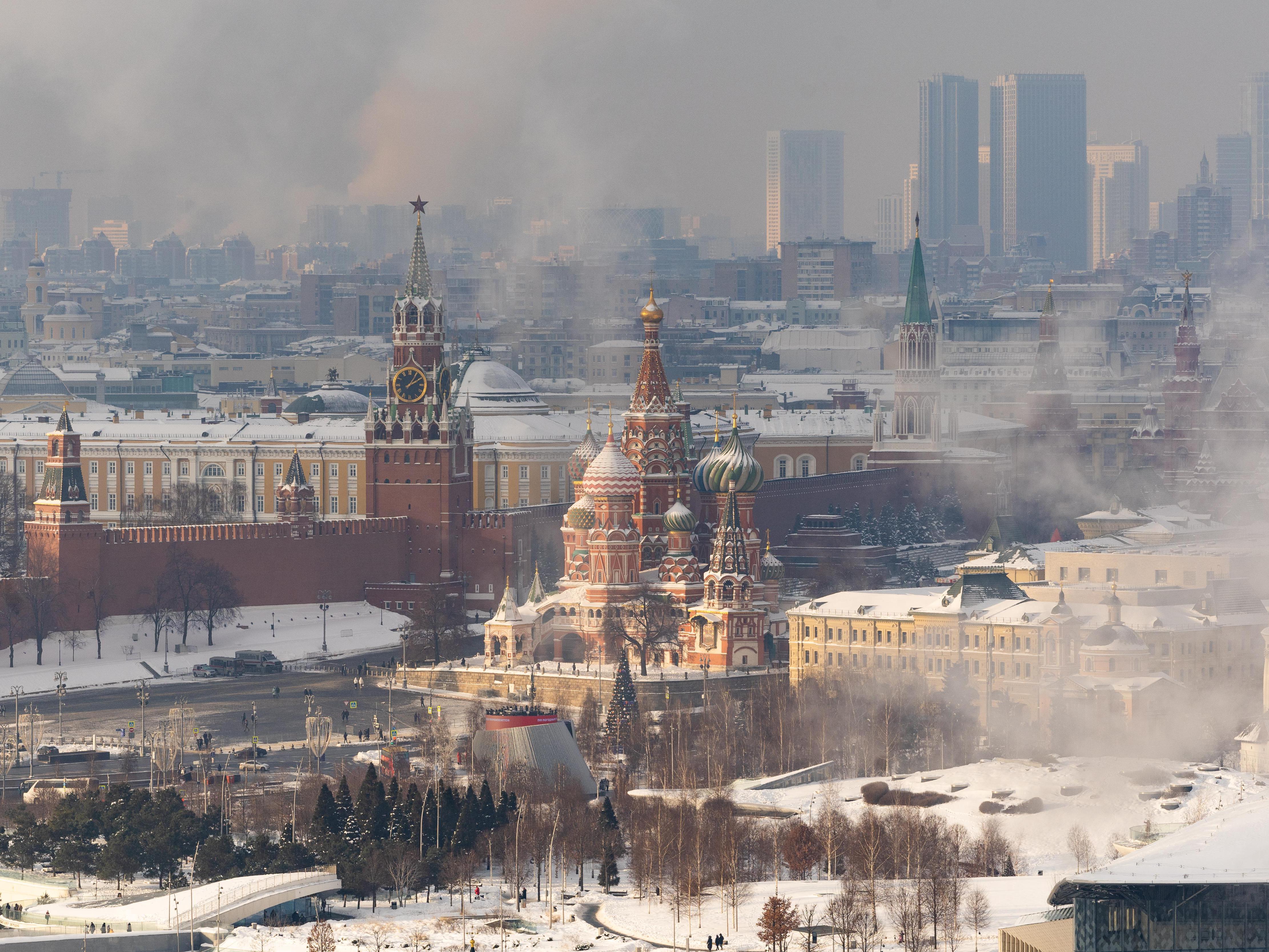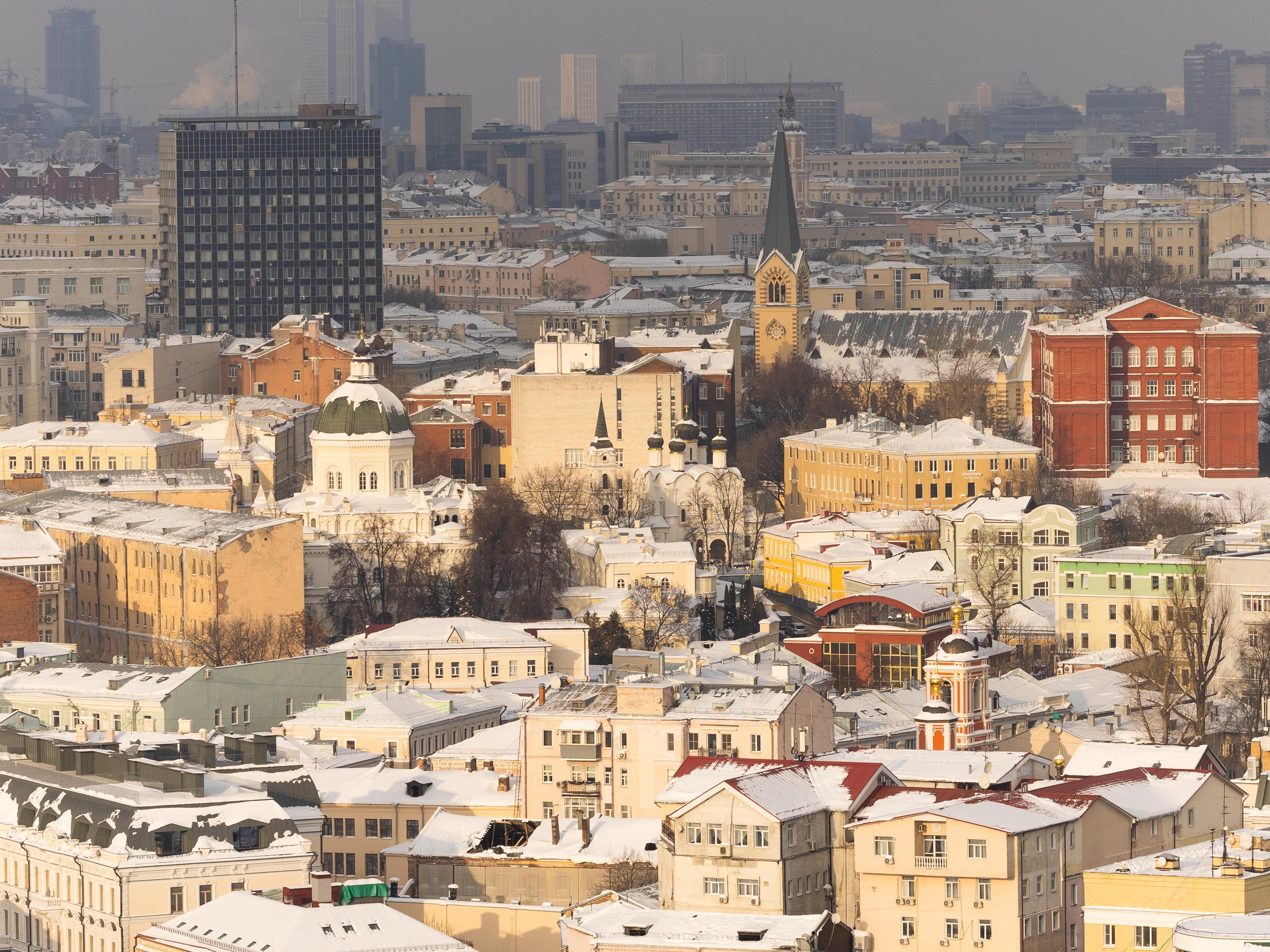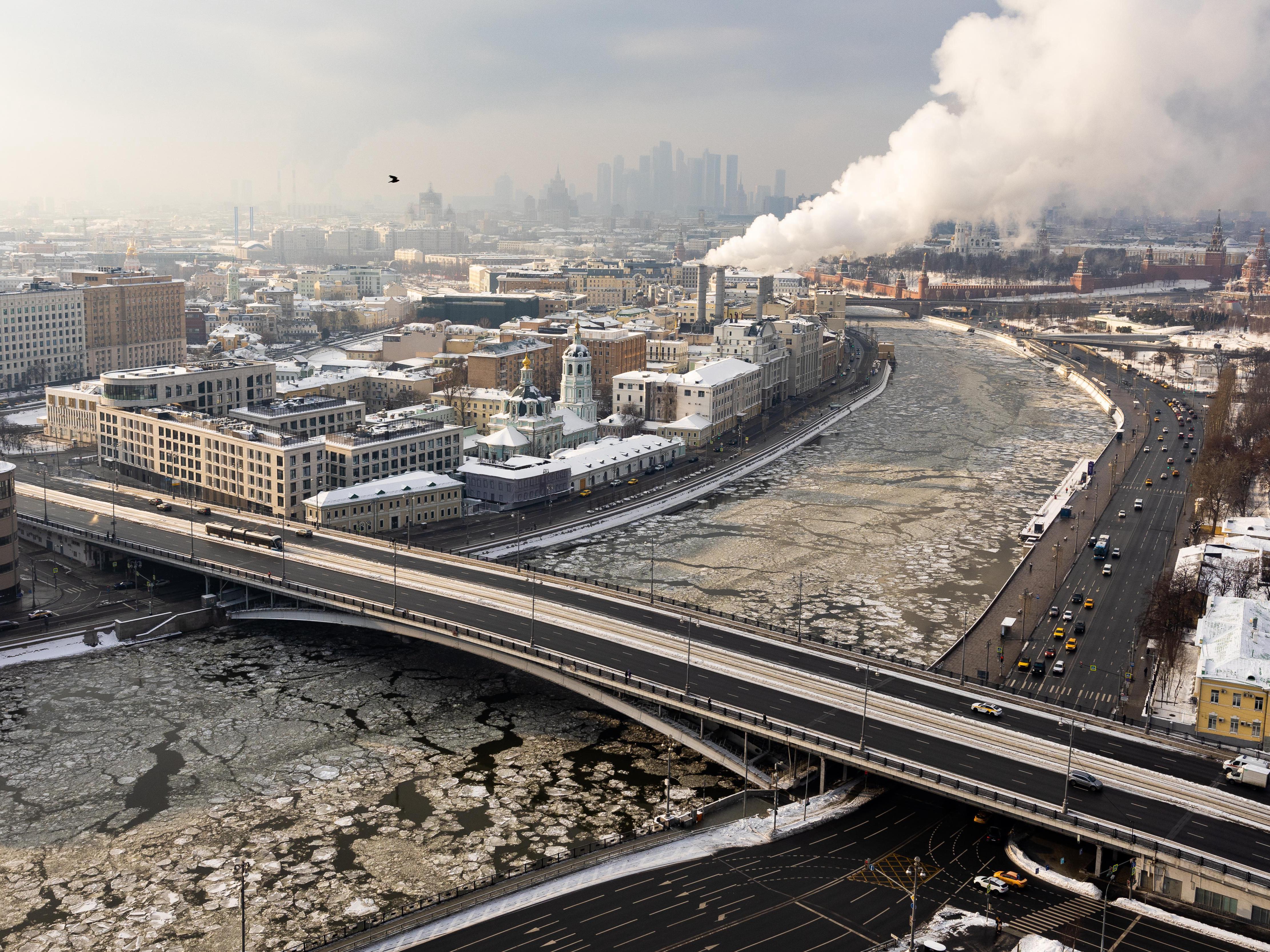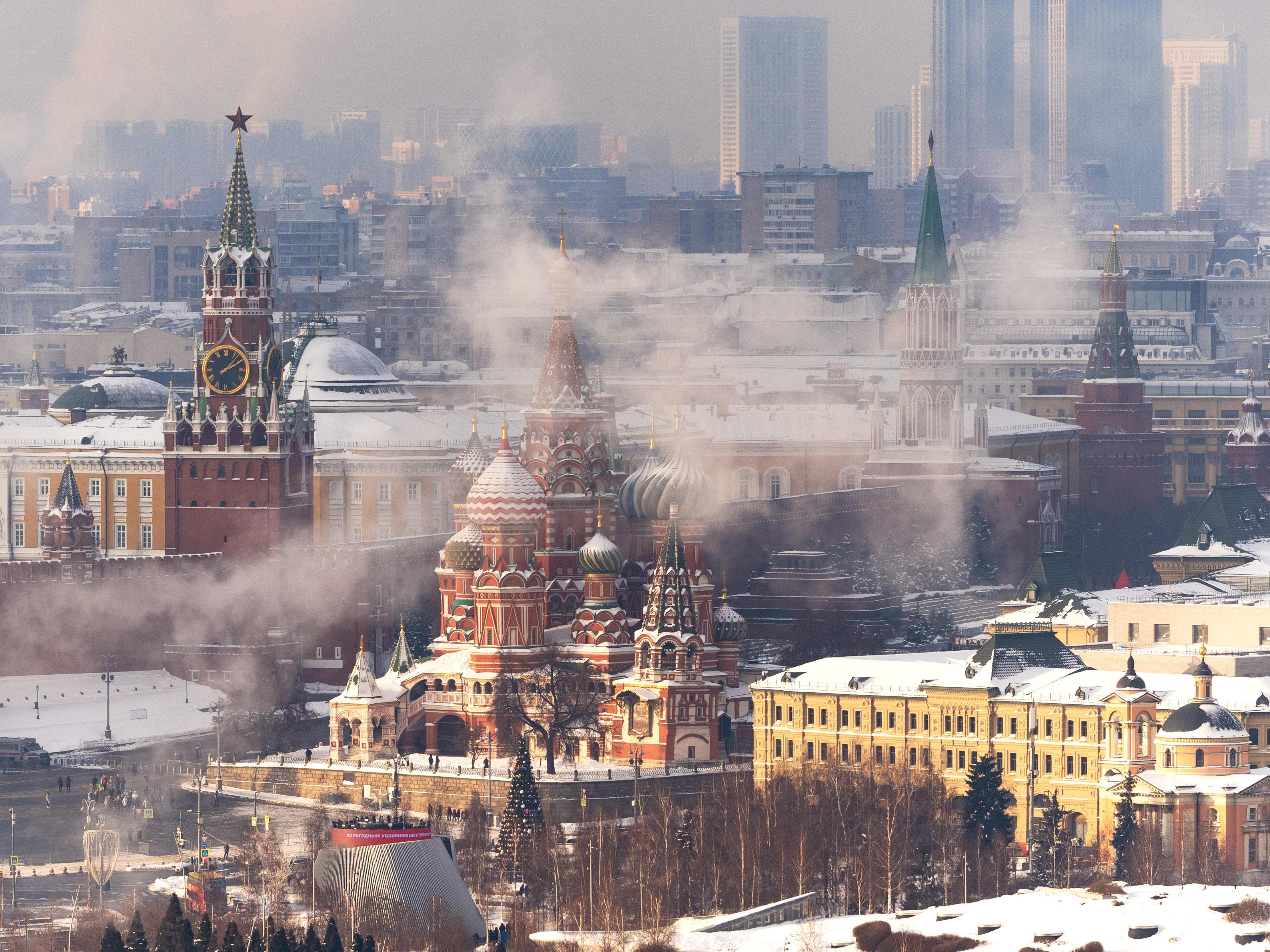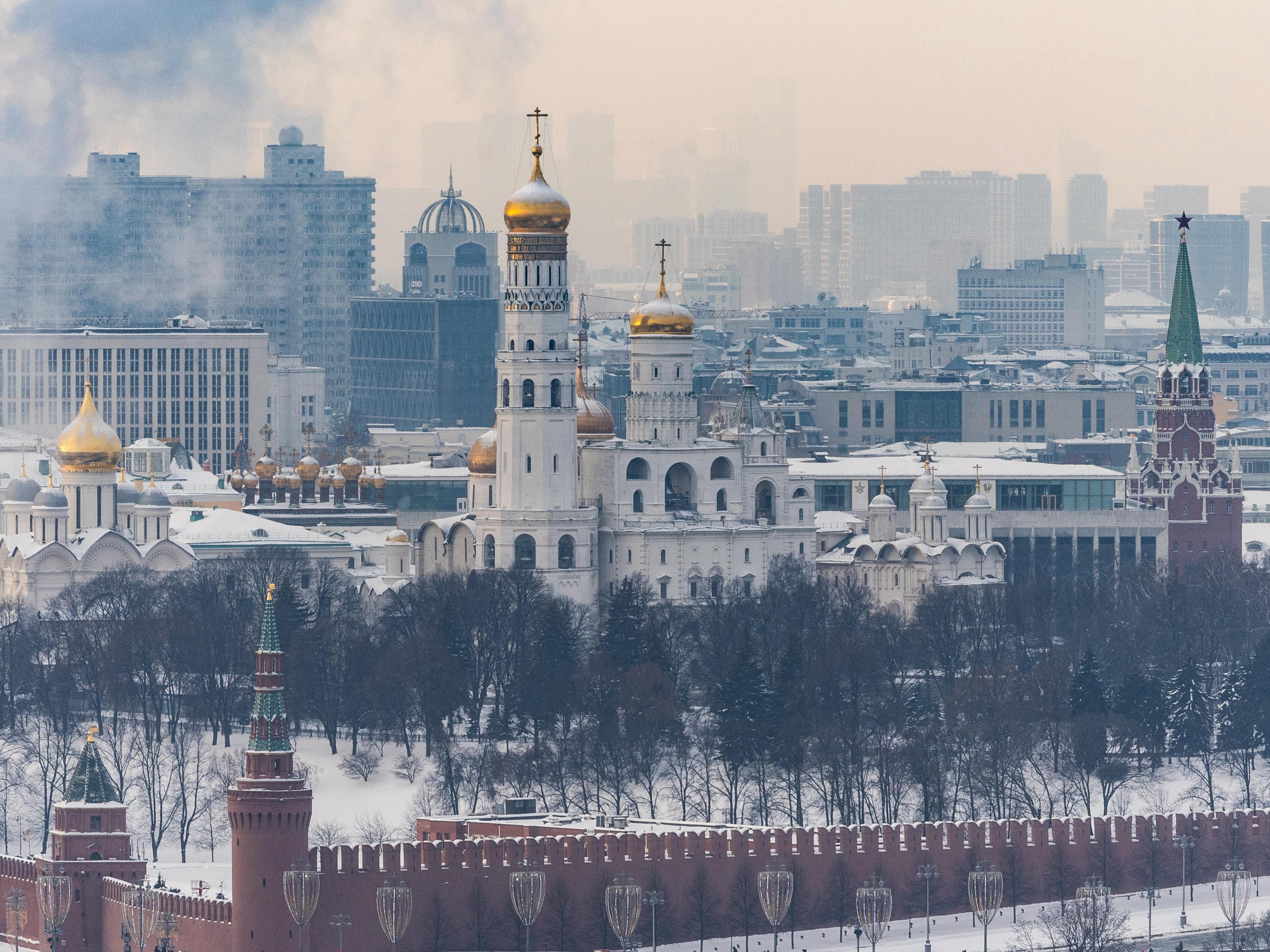 Moscow Frosty Sunset: 15 Aerial Photos with Kremlin View