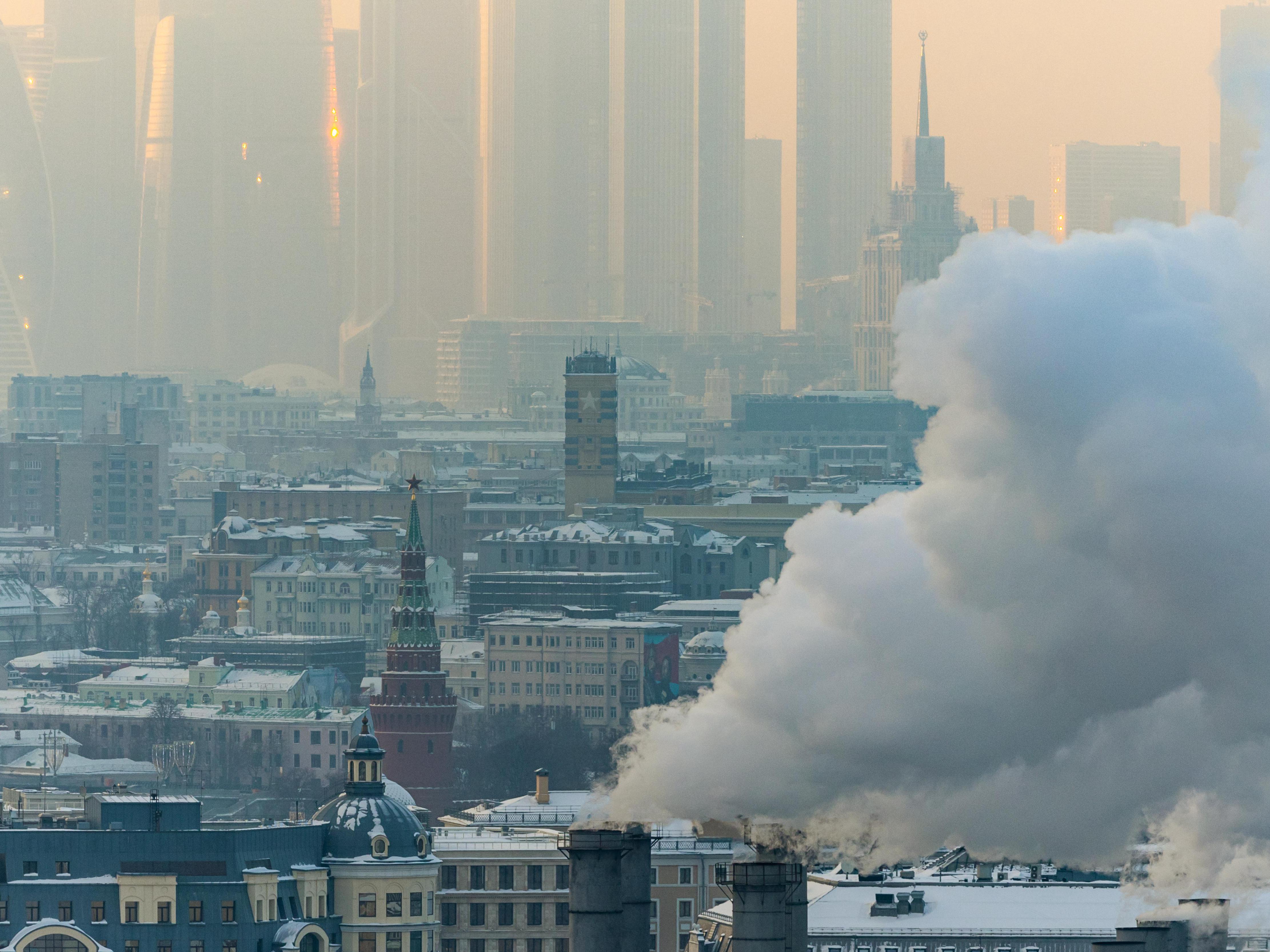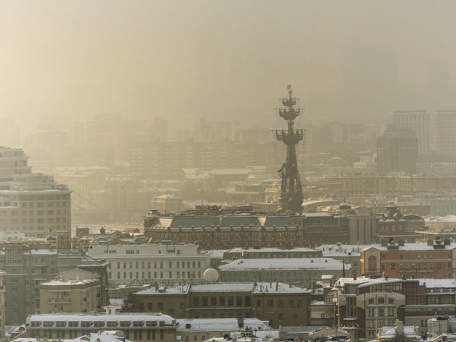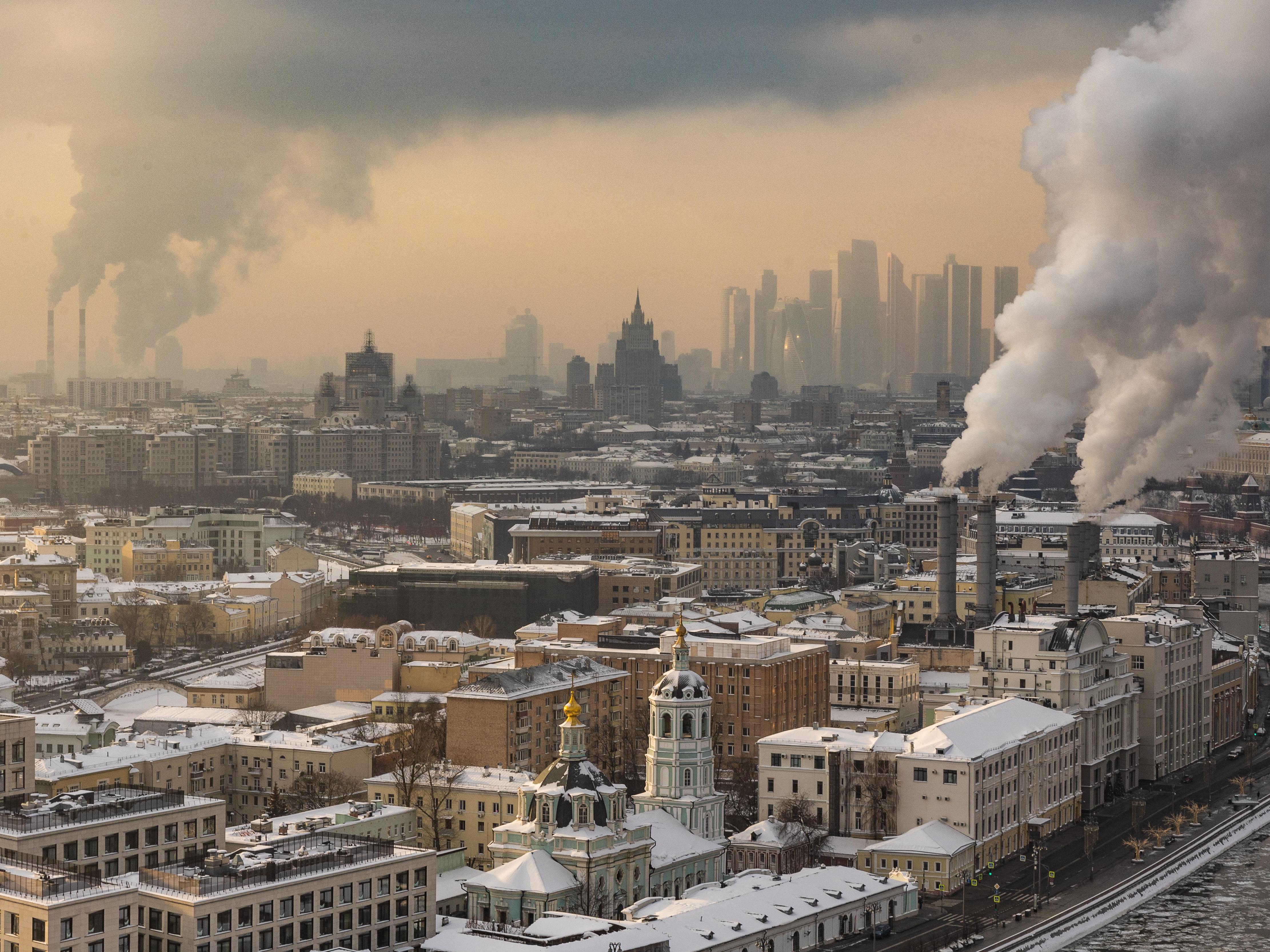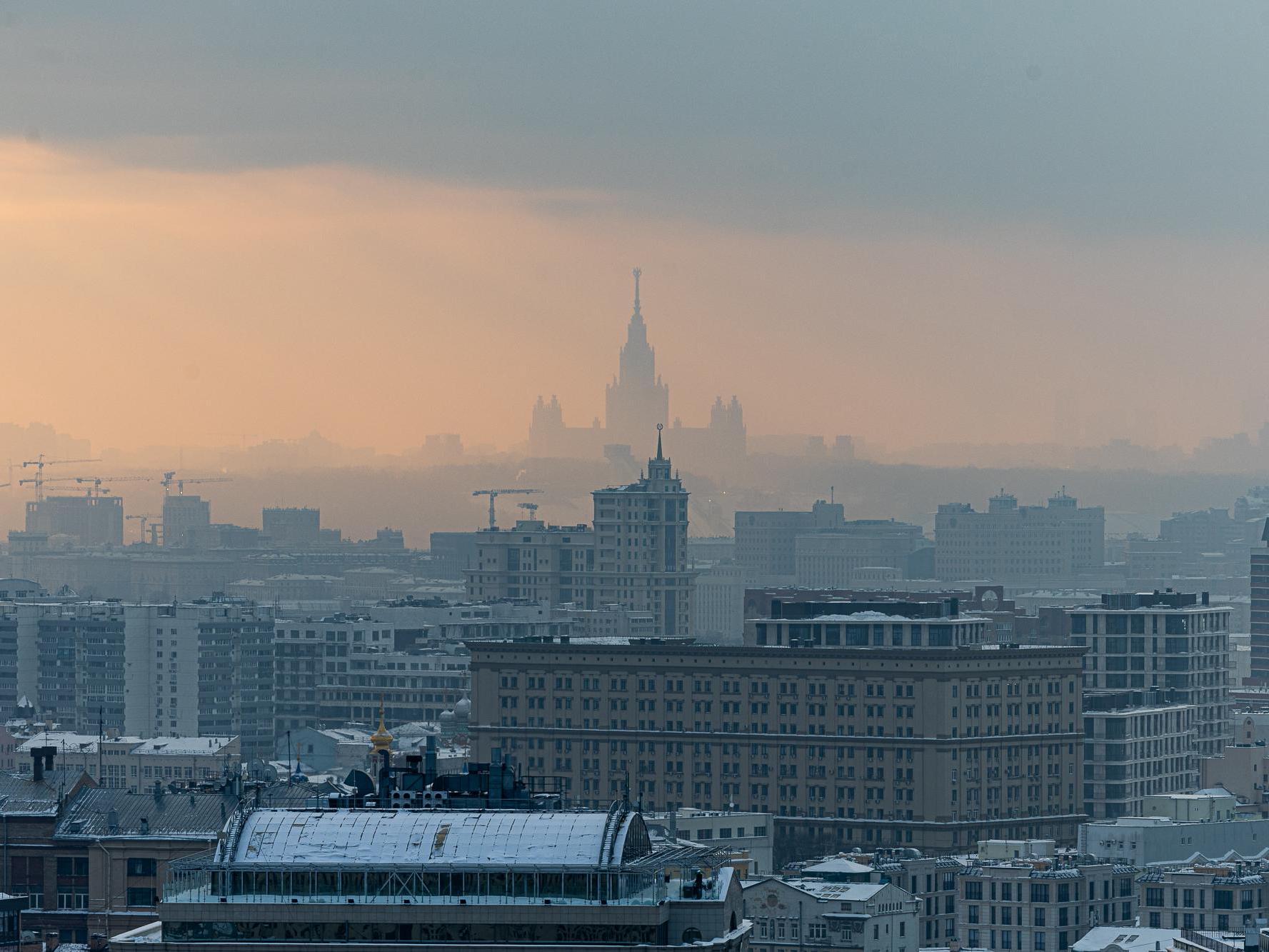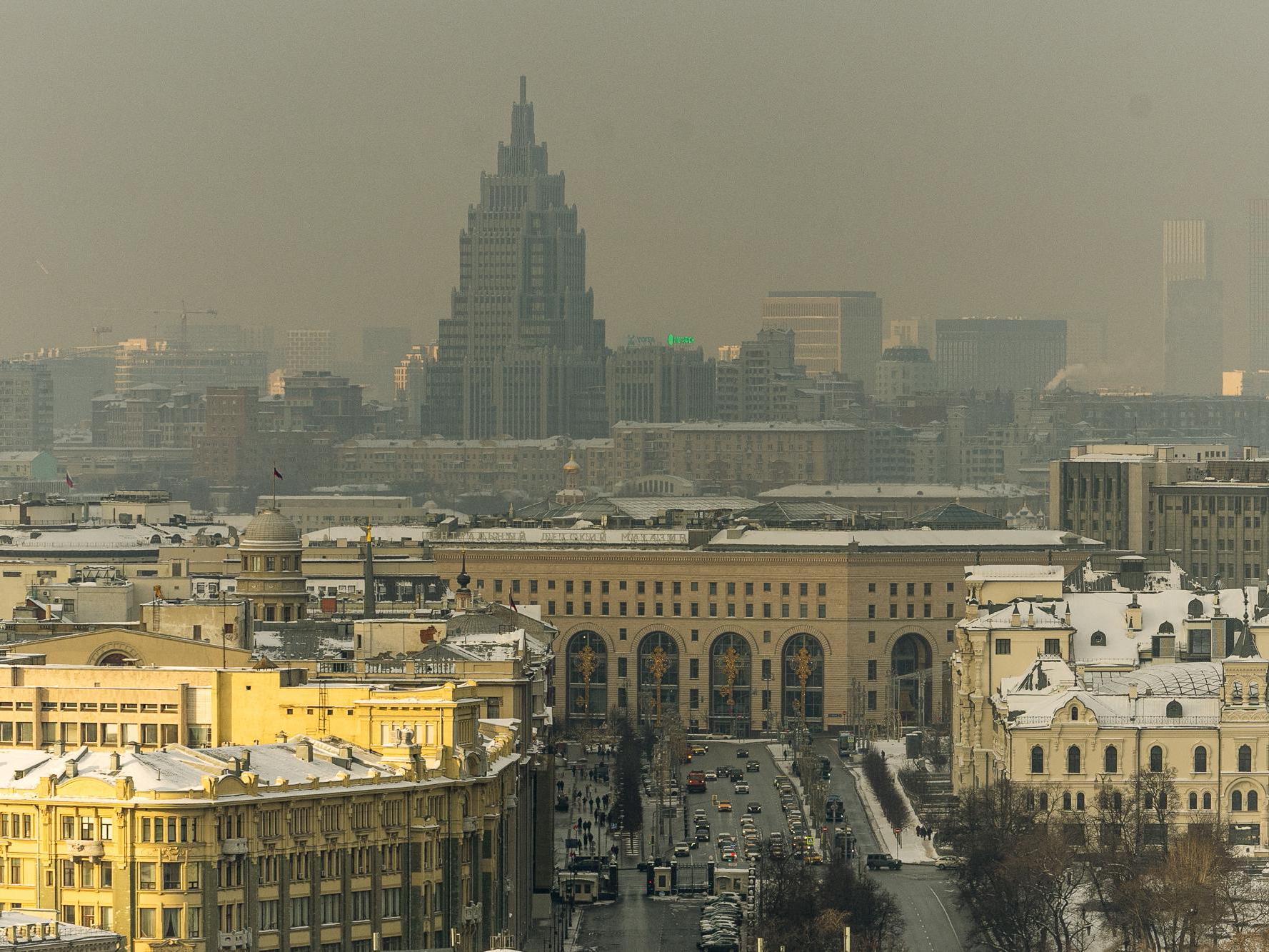 The western part of Moscow with the Ministry of Foreign Affairs skyscraper in the center.