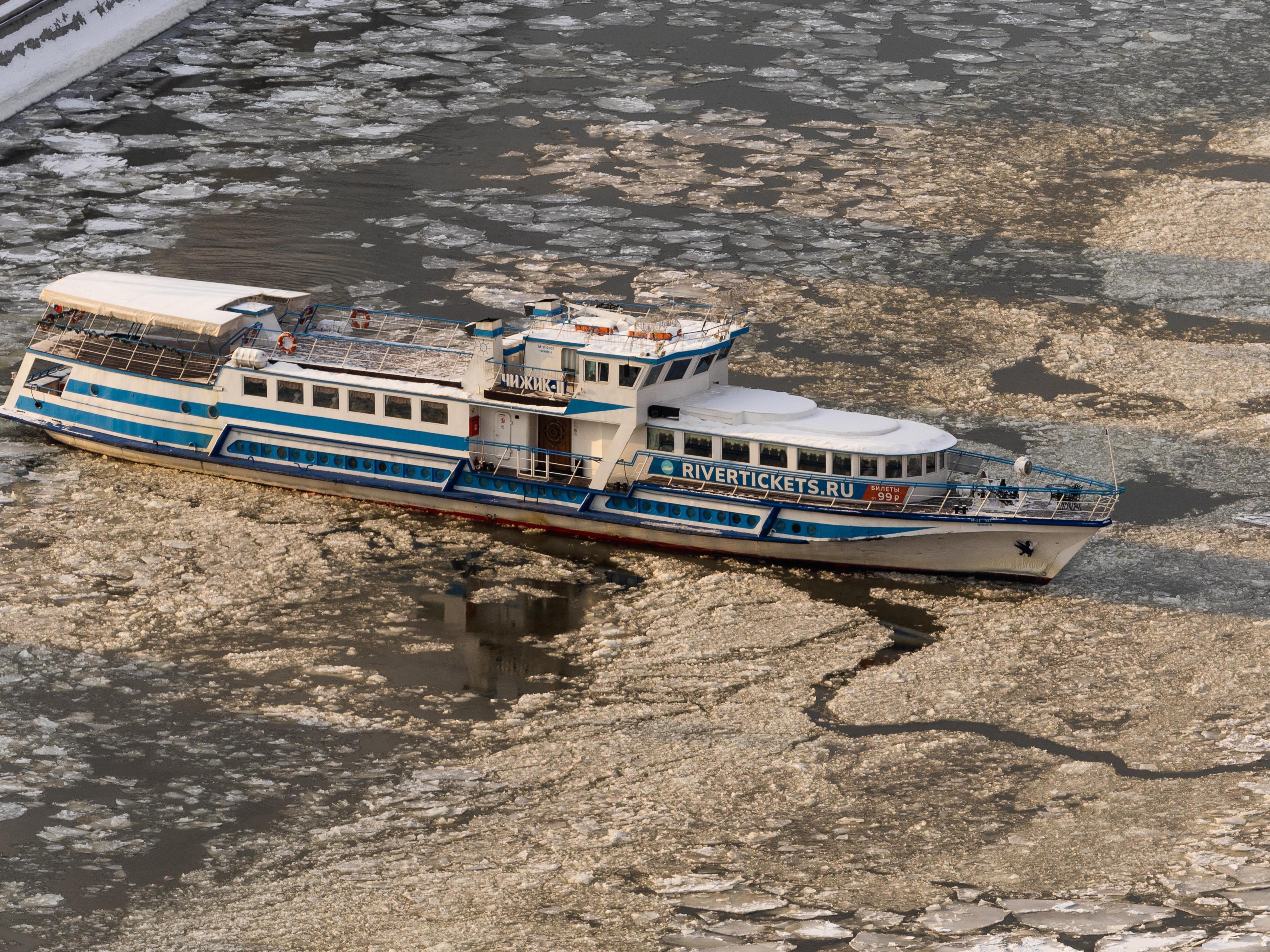 Despite the official closure of navigation on the Moscow River, some pleasure boats sail through the cracked ice all winter.
