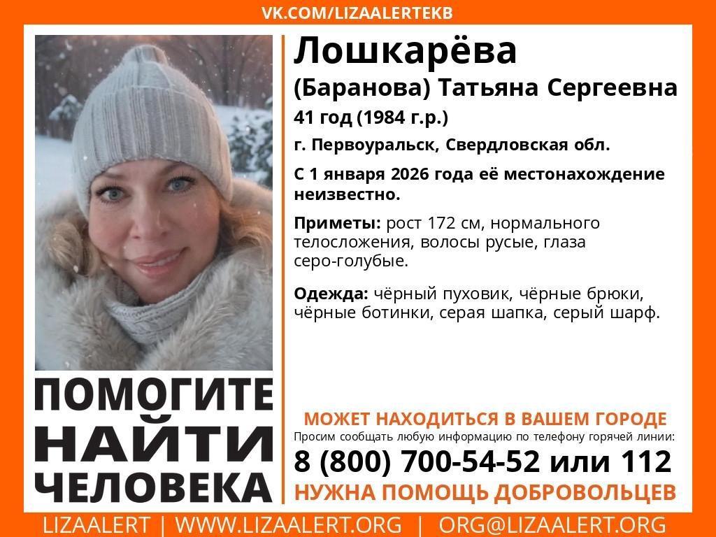 In Pervouralsk, a search is underway for missing Tatiana Loshkareva. On January 1, she went to work at the store «Krasnoye i Beloye» (Red and White) and disappeared. At home, the 41-year-old woman is awaited by her husband and two sons.