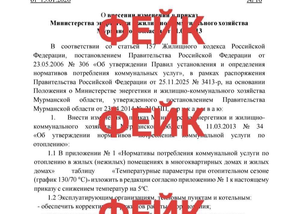 Authorities in Murmansk Region have dismissed social media reports of an order to lower heating parameters as a forgery, urging residents to trust official sources.