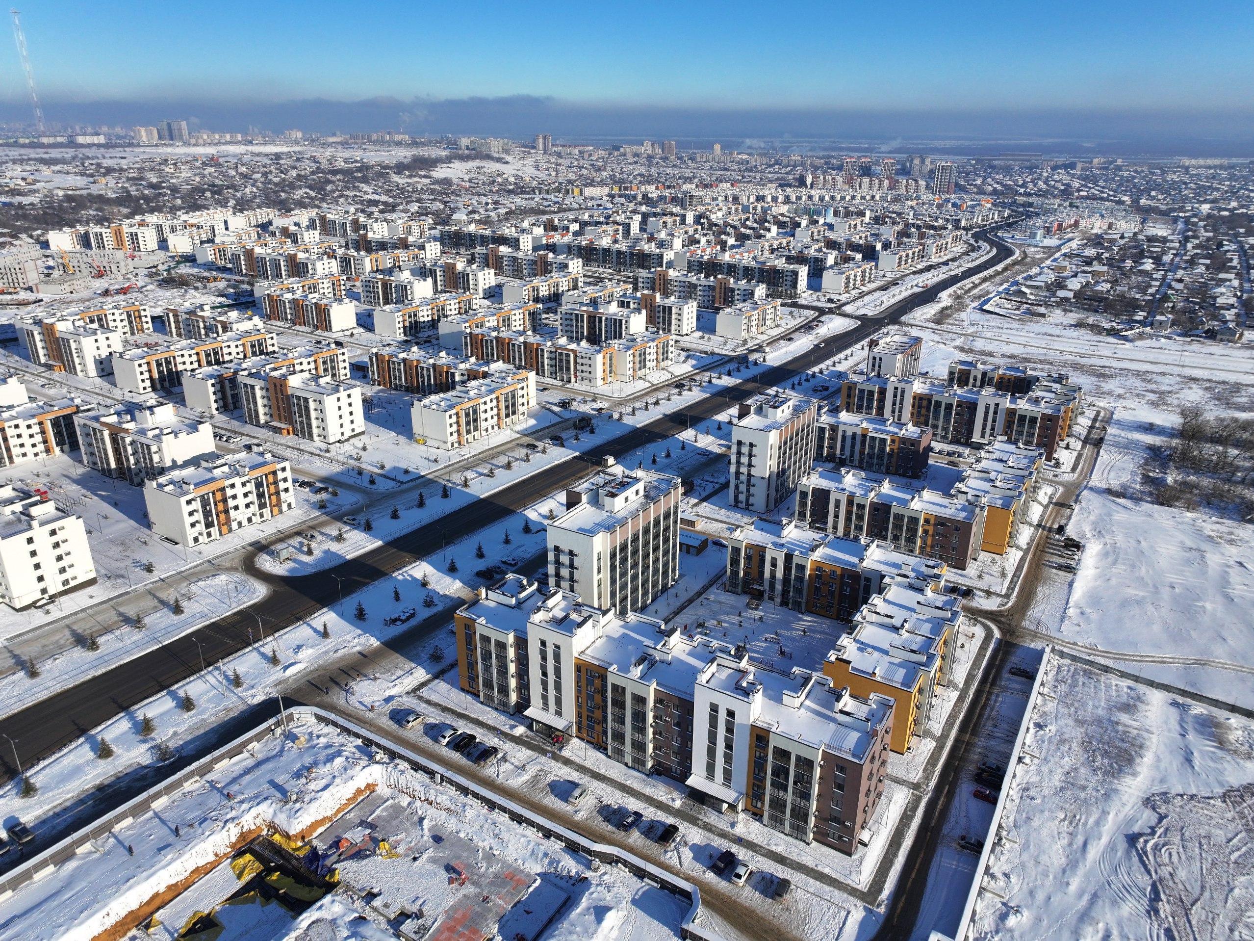 In 2025, the Dolina microdistrict celebrated its tenth anniversary. The project is positioned as an area of balanced development with well-thought-out infrastructure. More than 200 houses have been built, and another 27 are under construction. The project is planned until 2035, with the total housing area upon completion reaching 1.3 million m² (14 million ft²) on 414 hectares (1,023 acres). The microdistrict already has a school, three kindergartens, shops, cafes, fitness centers, and a 4-hectare (10-acre) park, and now a second school for 1,280 students, a children«s clinic, and a sports and recreation complex are under construction.