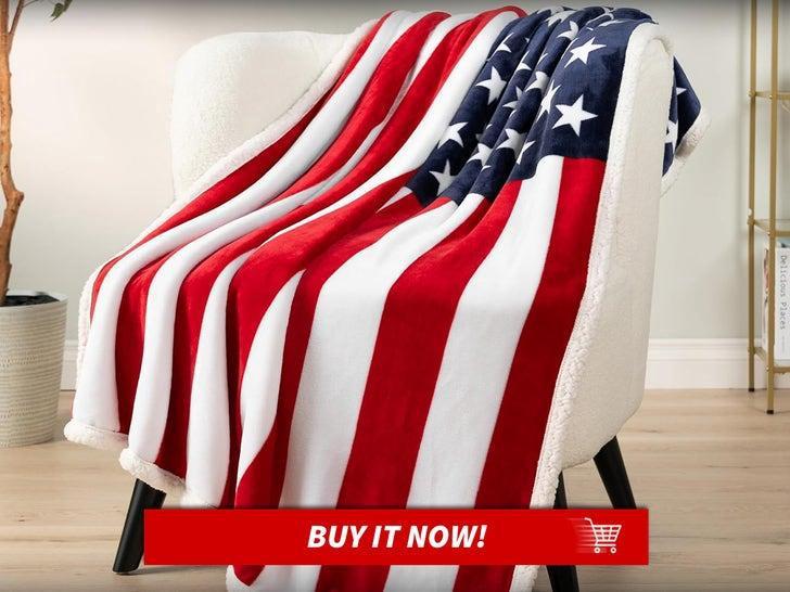 Soft blanket patterned with the American flag.