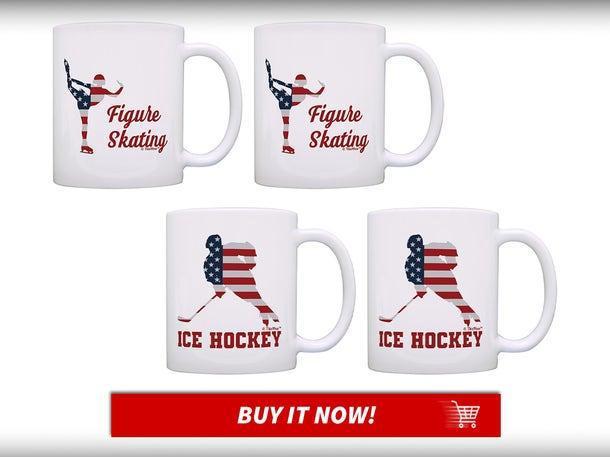 - USA Winter Sports Mugs — $28. Start your morning catching up on Olympic highlights over coffee in these themed mugs. The set includes two patriotic cups featuring your chosen sport, from hockey to speed skating. Keep one at home and take the other to the office so everyone knows who you«re rooting for.