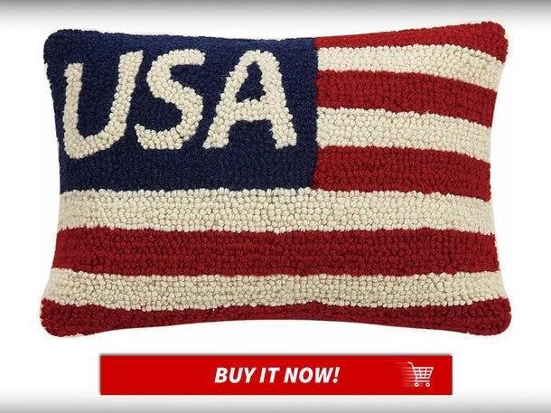 - American Flag Pillow — $35. Deck out your home for the Olympic party with this decorative wool pillow. It will add a bright accent to your couch or viewing area. And after the Games are over, you can use it for other holidays too.