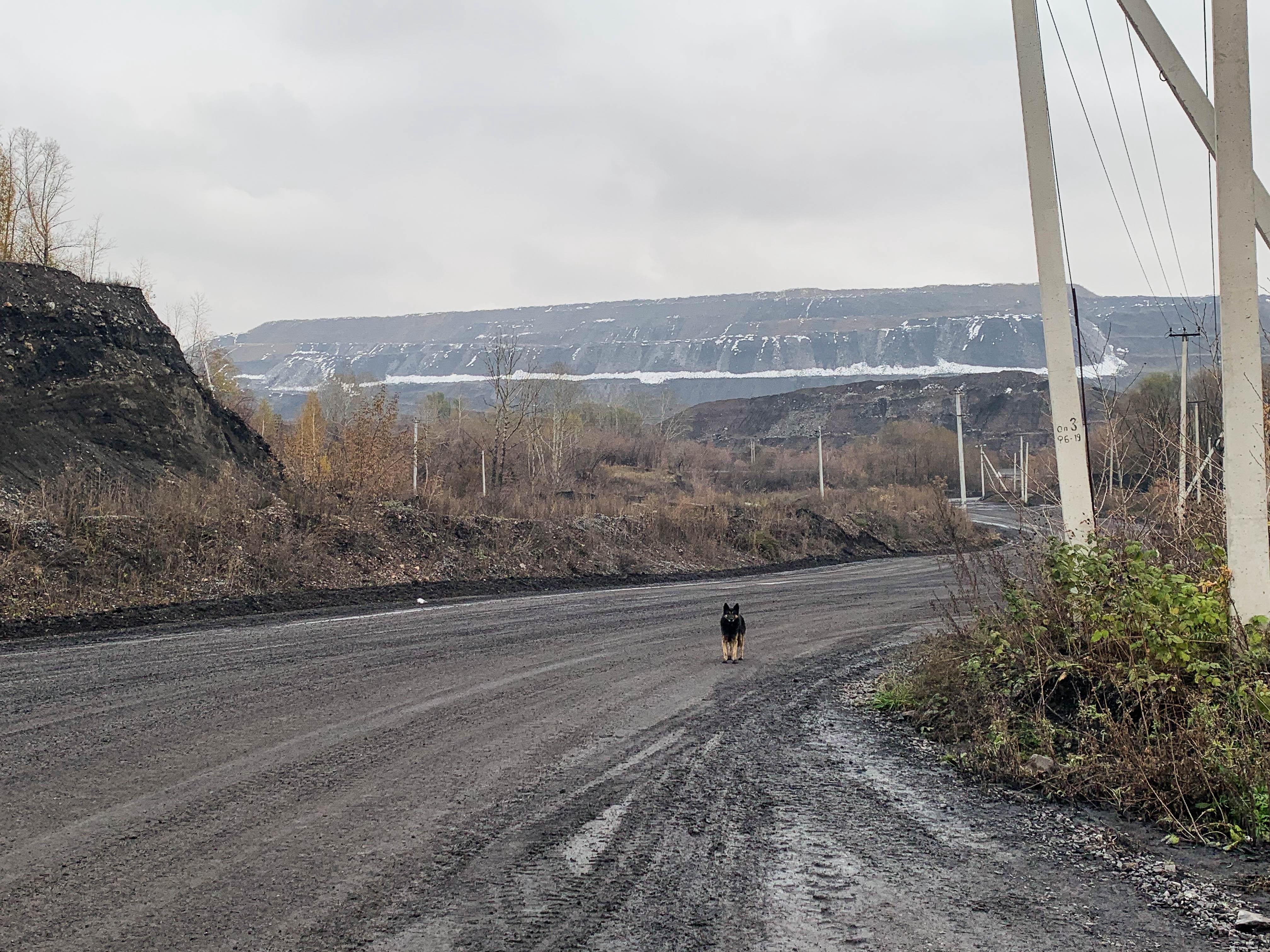 In the distance, black and white mountains of dumps are visible, along with dozens of BelAZ trucks that carry out smoldering rock on their backs and dump it near the access road. On these piles, the rest of the pack of dogs has found shelter, climbing away from the frozen ground and stiff snowdrifts. It seems that all the land in the city is one big open-pit mine.