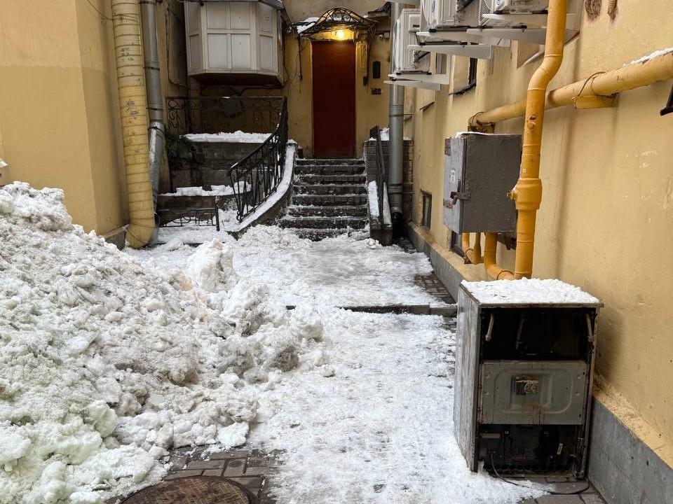 The management company is responsible for clearing the courtyard of snow and ice. Its area of responsibility includes: