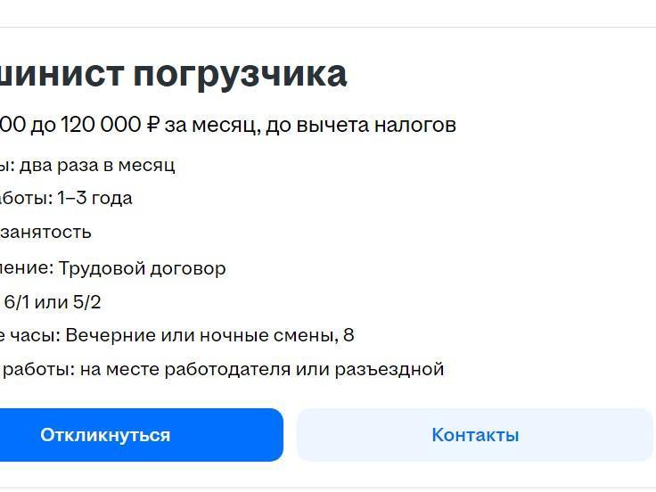 «City Improvement» also wants to hire a loader operator for 90,000-120,000 rubles ($1,000-$1,333).