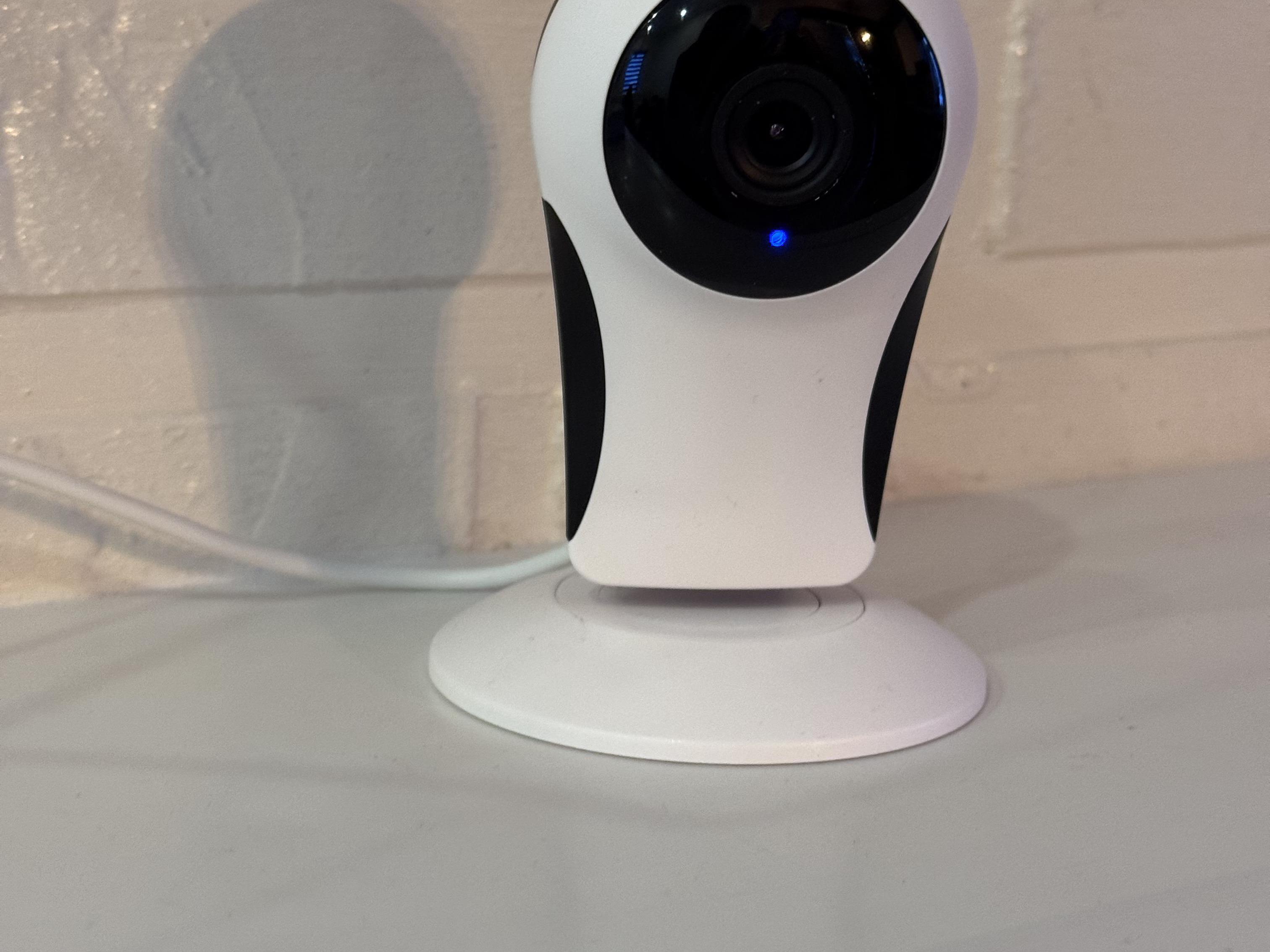 A smart surveillance camera with two-way audio helps stay connected with a pet.