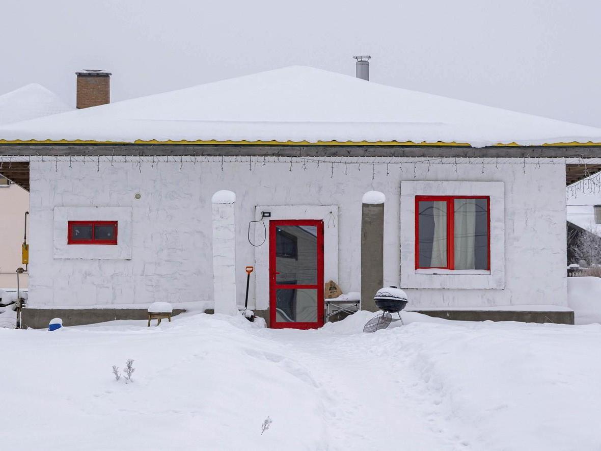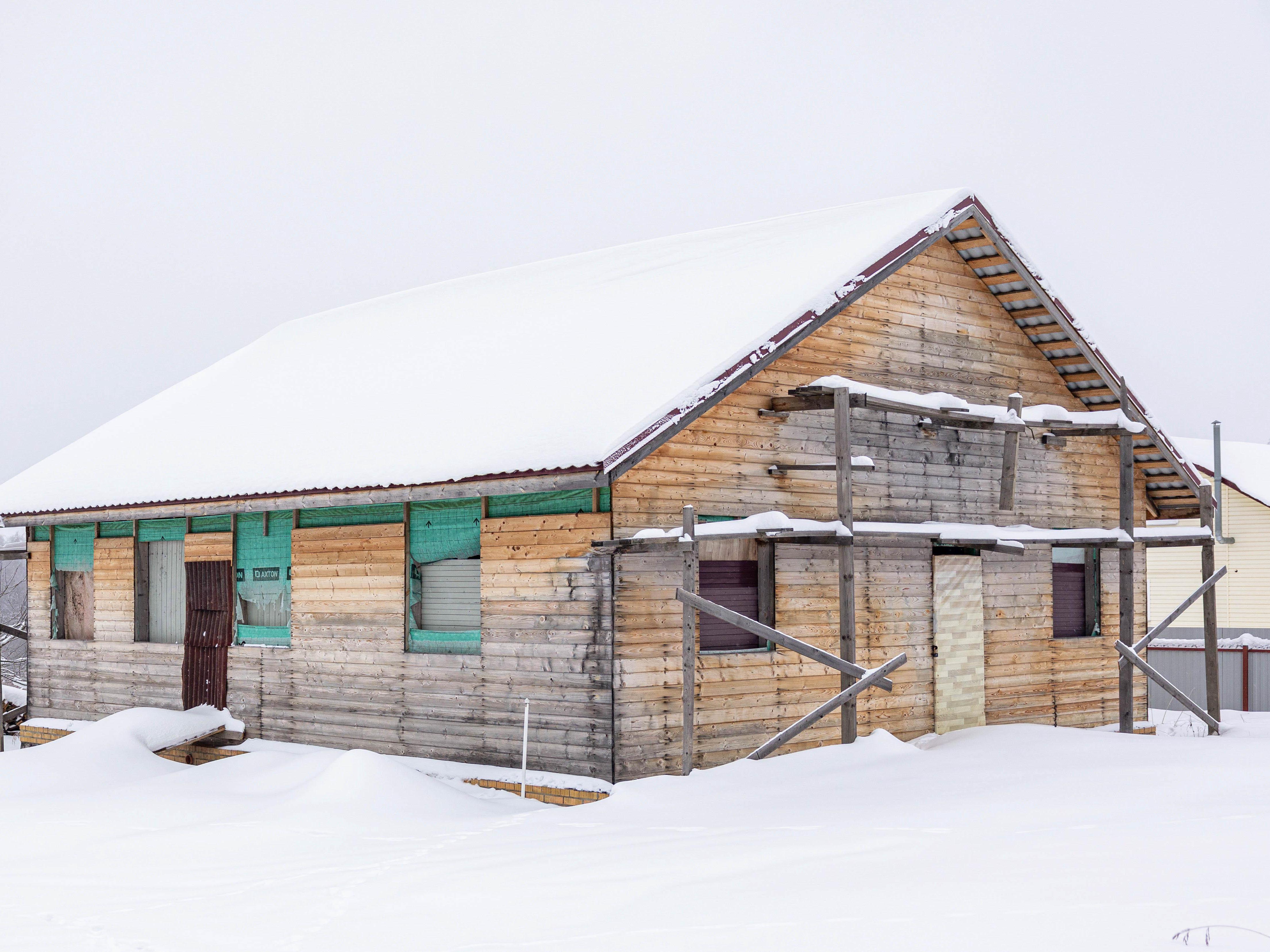 The feature explores winter settings in a village near Yaroslavl, highlighting unique homes.