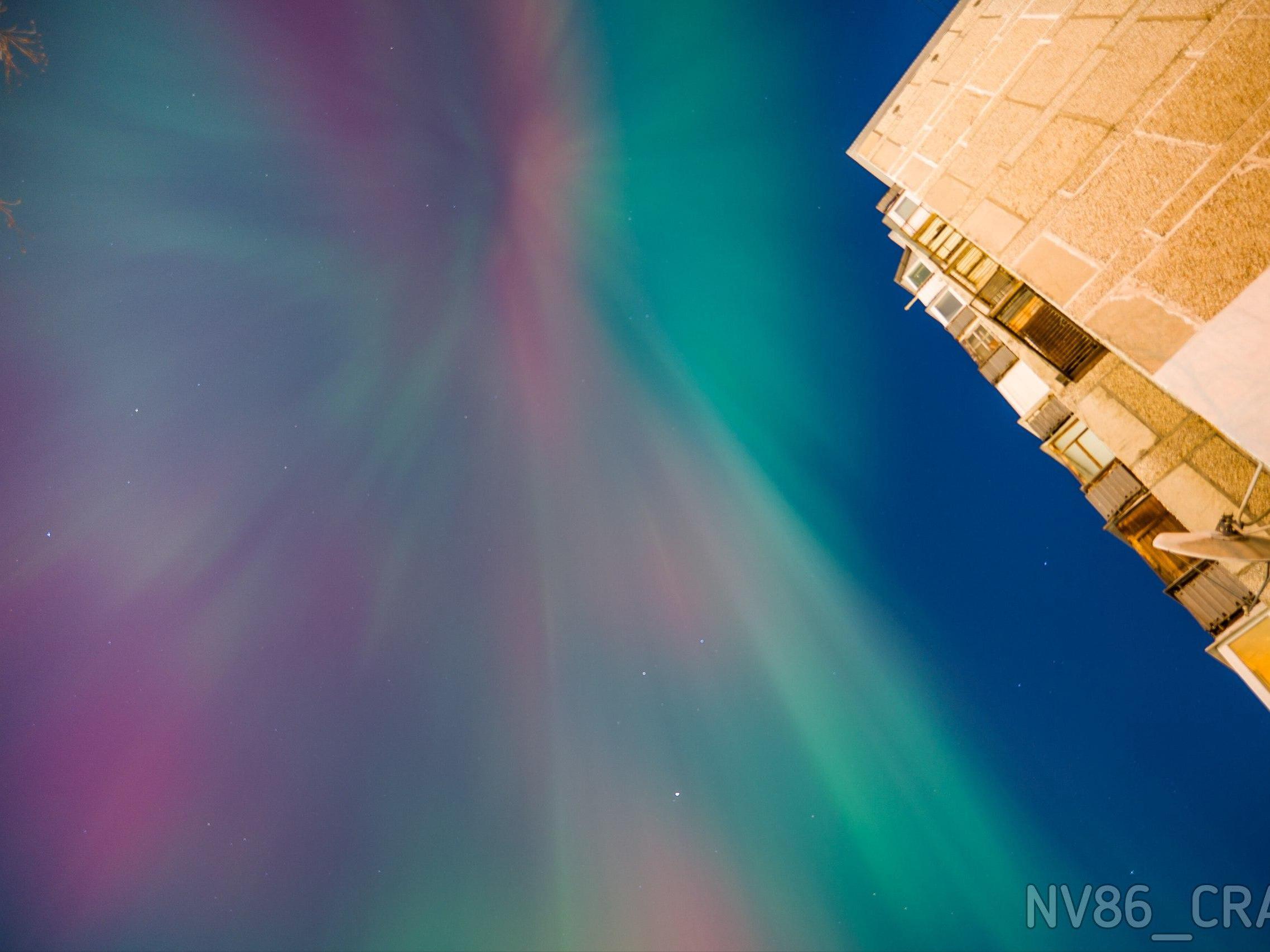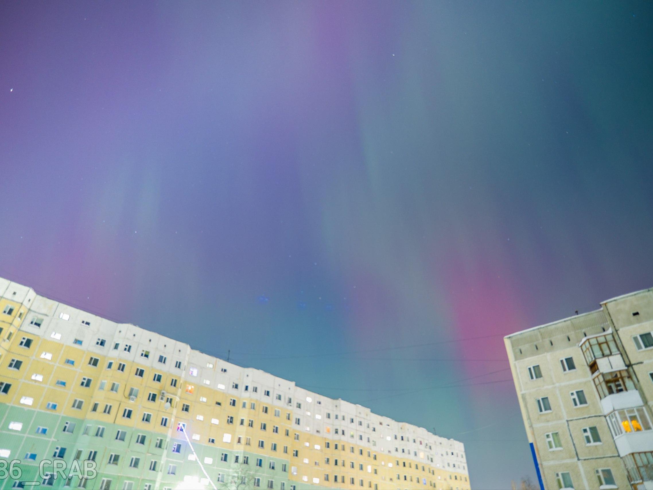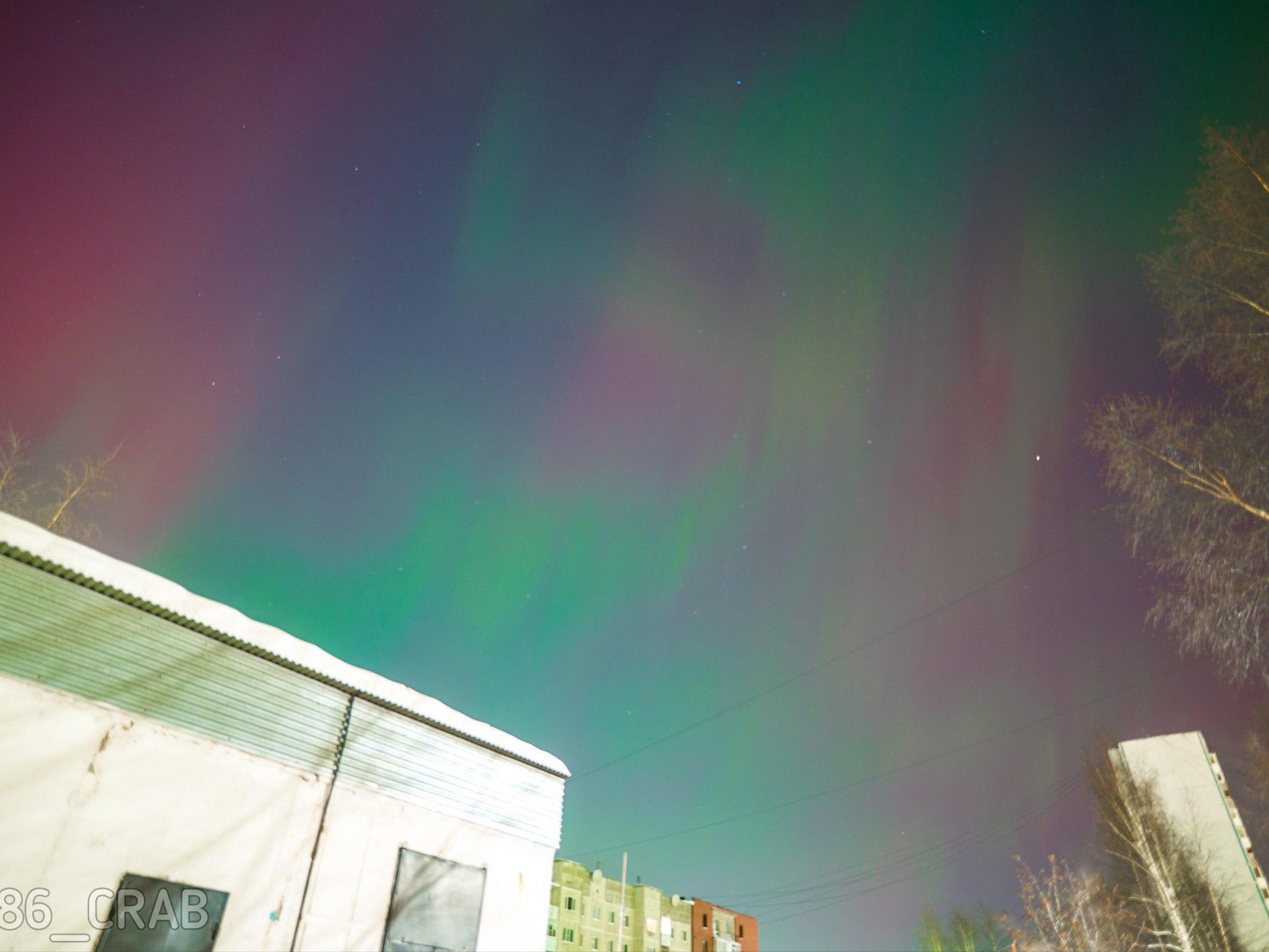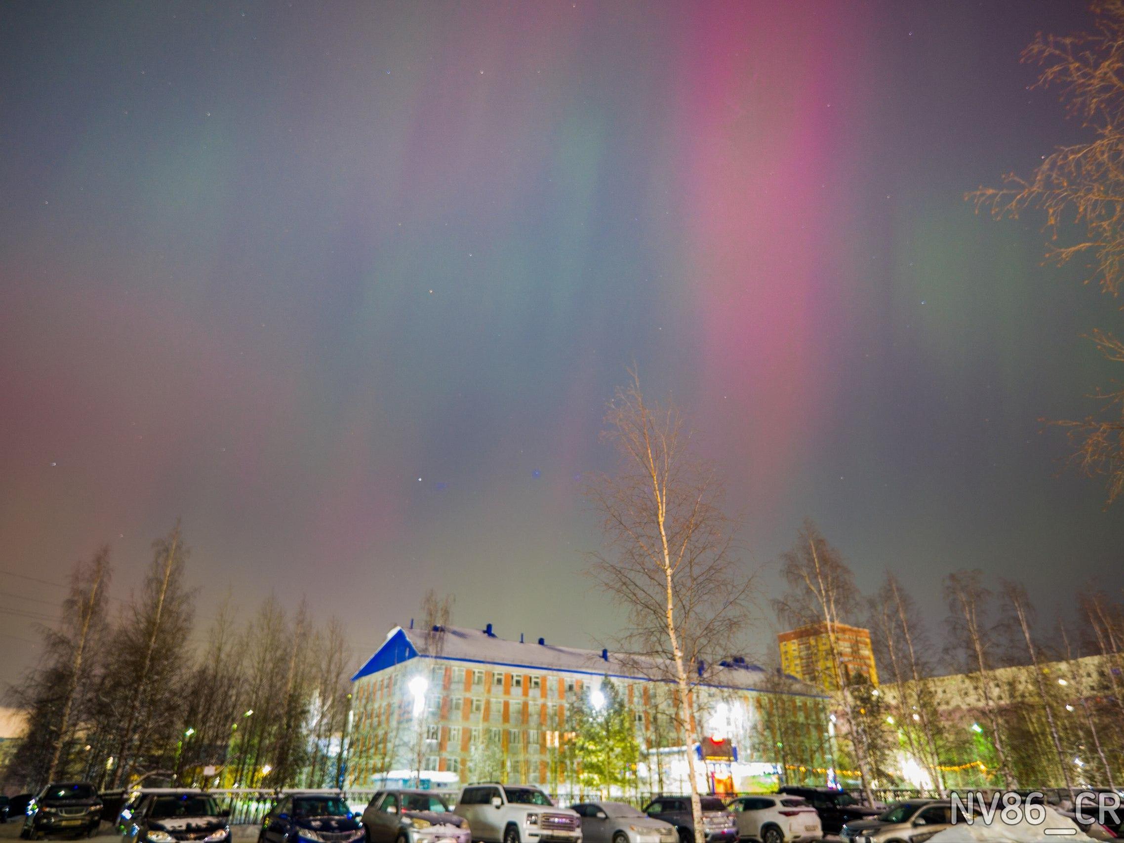 Nizhnevartovsk experiences colorful aurora hues due to the solar activity.