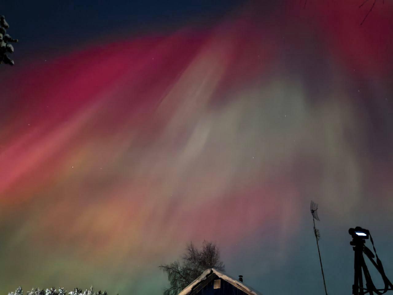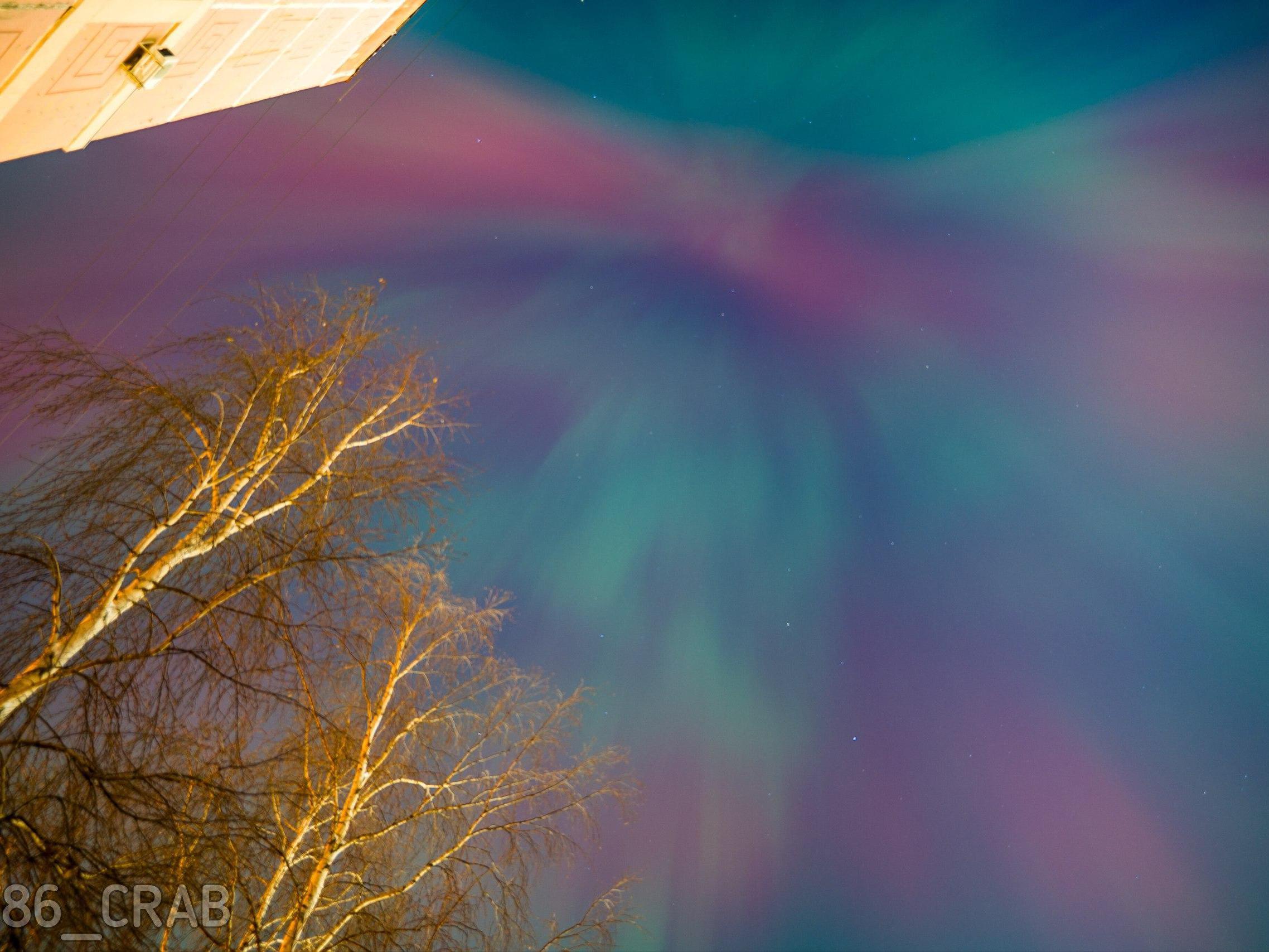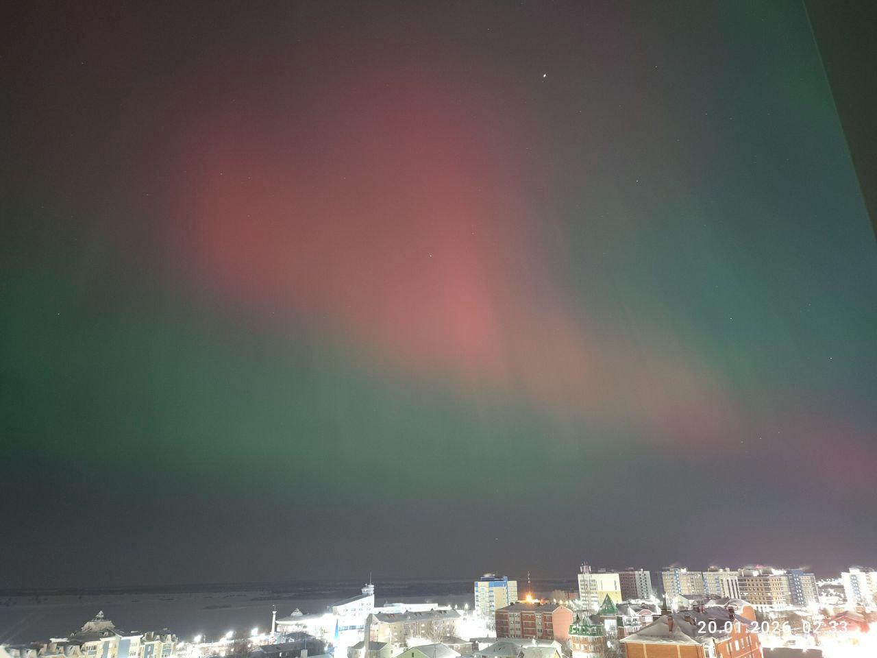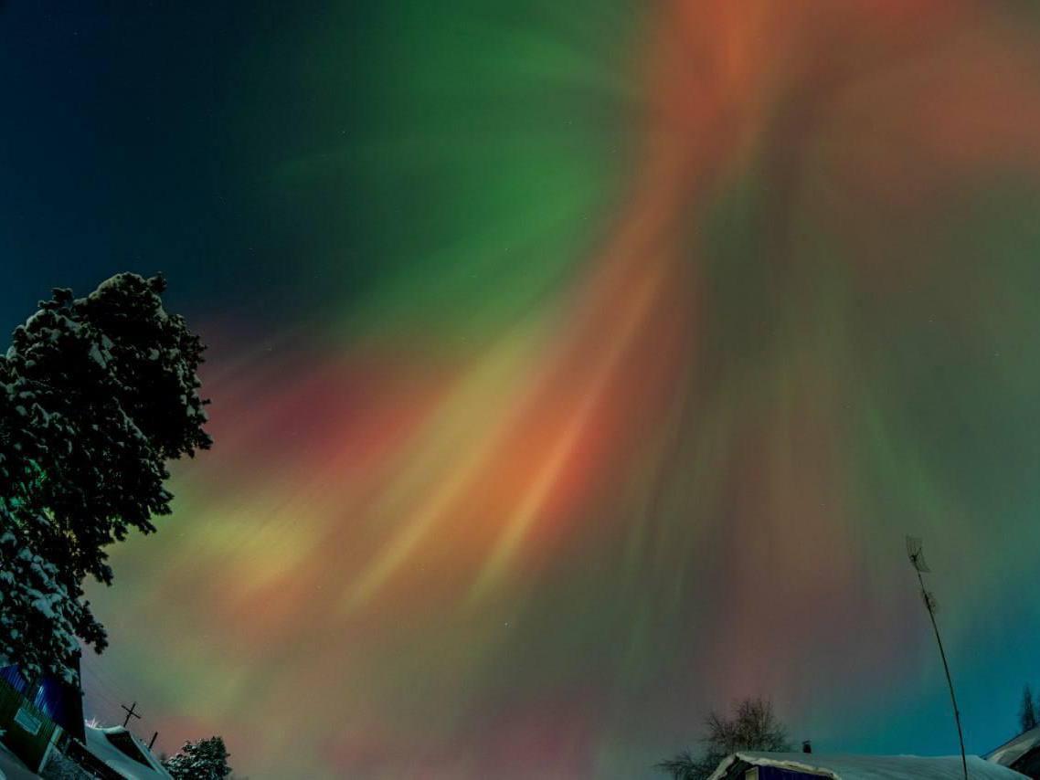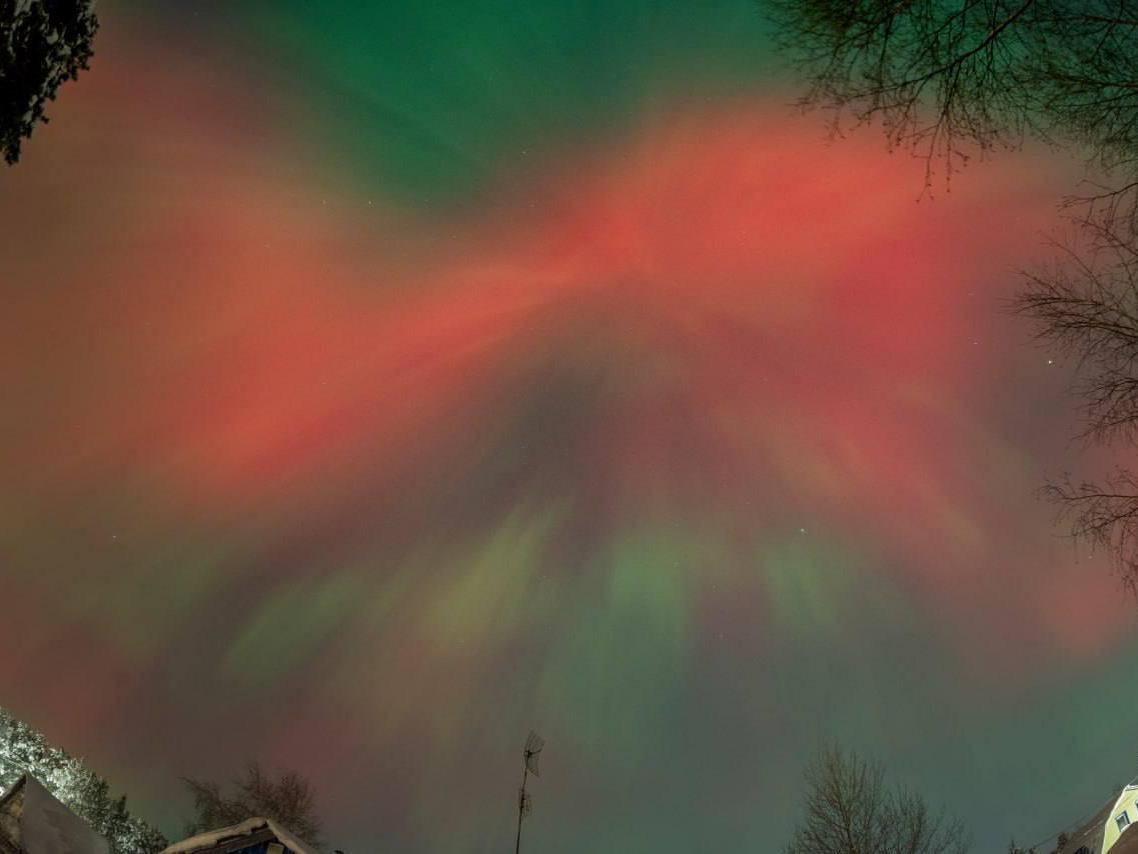 Nizhnevartovsk experiences colorful aurora hues due to the solar activity.