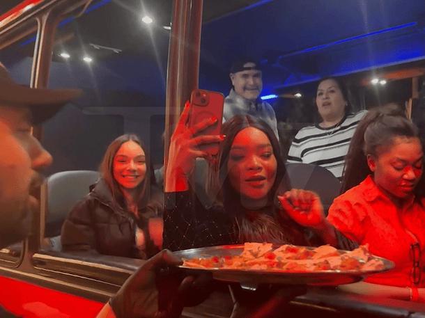 One of the evening shows organized a tour in honor of the Grammy Awards, and it went so hot that the bus almost lost its roof — after all, two famous rappers performed right inside.