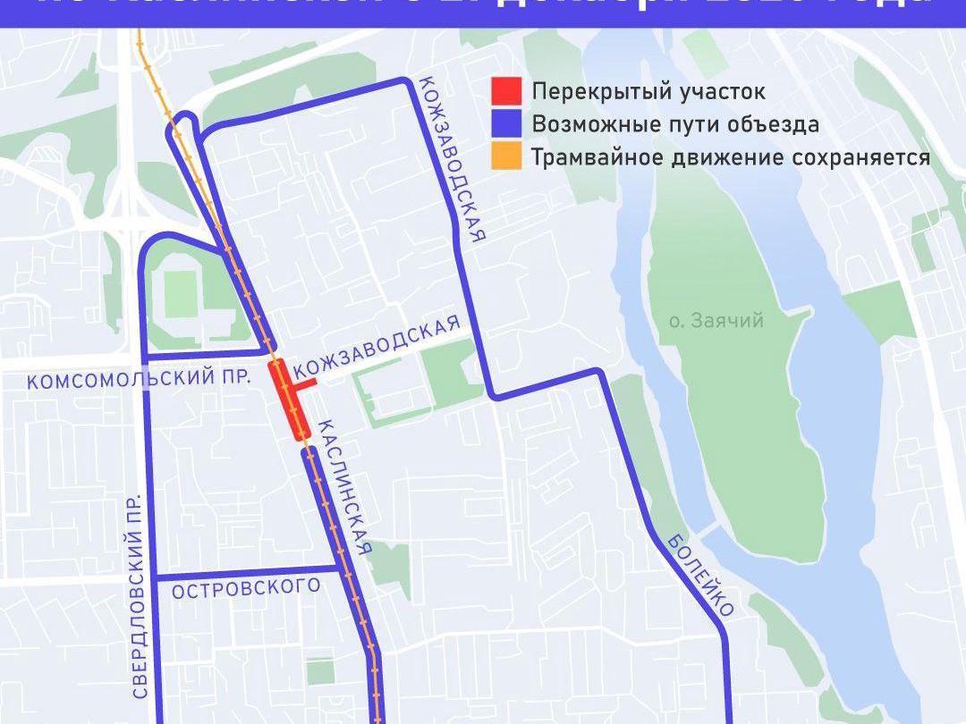 To recap, traffic on Kaslinskaya (from Komsomolsky Prospect to Ostrovsky) was closed at the end of December until June 2027 for the construction of the launch pit for the North–South metro tram line.