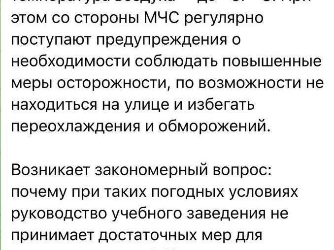 «We have to travel to the college and back in conditions that directly threaten health,» the text notes.