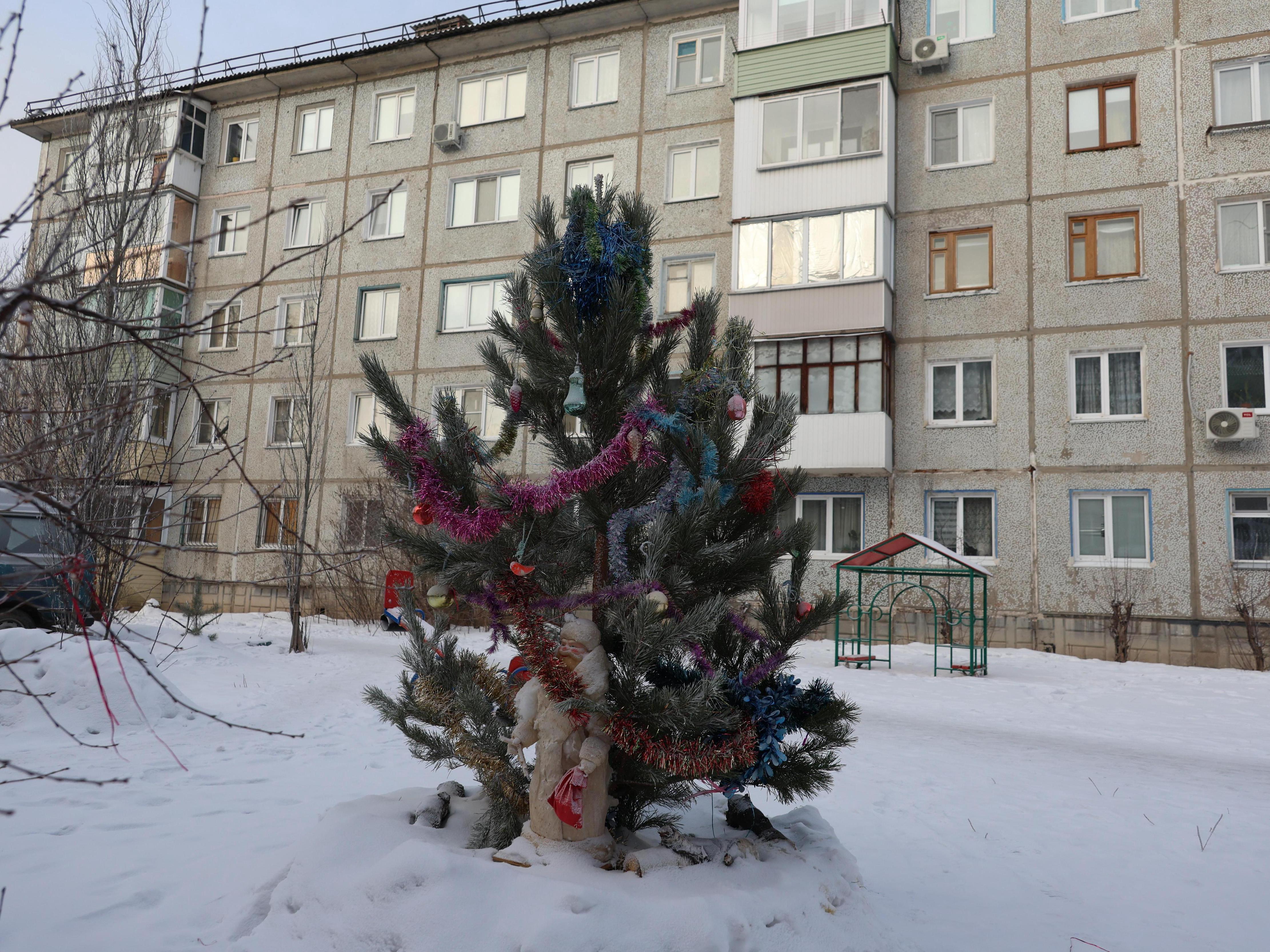 It«s clear that locals love the district and try to be tolerant of many things. The courtyards are cozy, but along the sidewalks stretch neat gray snowdrifts. Near the houses, makeshift »ice rinks« are visible: where there was recently a pipe burst, only frozen lakes remain, dusted with the same gray snow. New Year»s trees with decorations still stand, and over the roofs of houses — gloomy clouds formed by smoke from the thermal power plant. And here, the locals« reserve of leniency runs out.