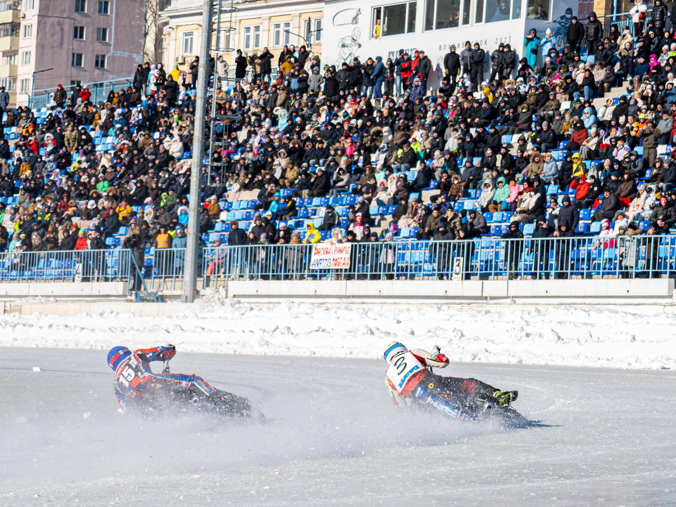 On Sunday, the Avangard Stadium was noisy, as athletes prepared their two-wheeled steeds for the race, deciding that ice and sub-zero temperatures are no hindrance to riding «with the wind.» This is the second ice speedway in Vladivostok, revived after a long 40-year break.
